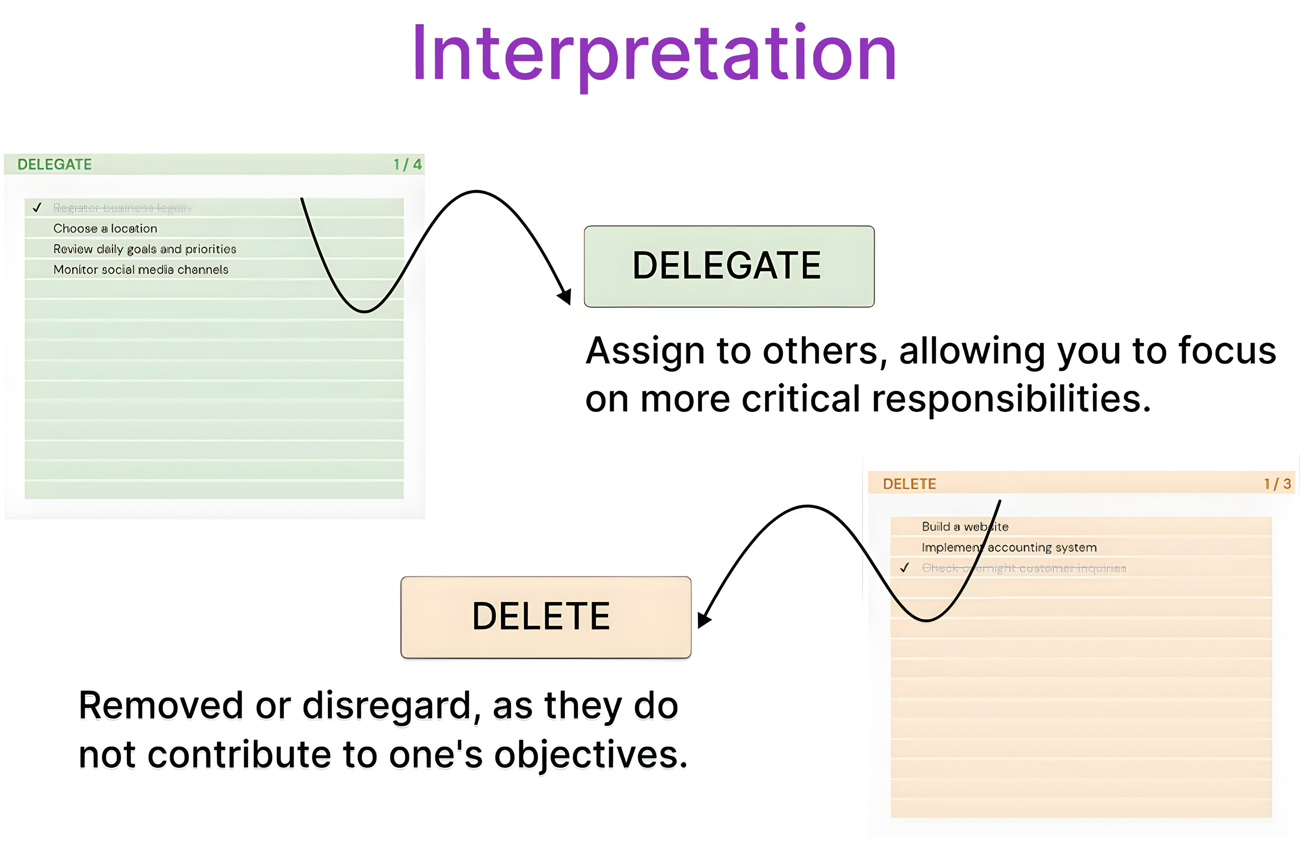 ✔ Delete Interpretation: Remove tasks that do not contribute to objectives.
