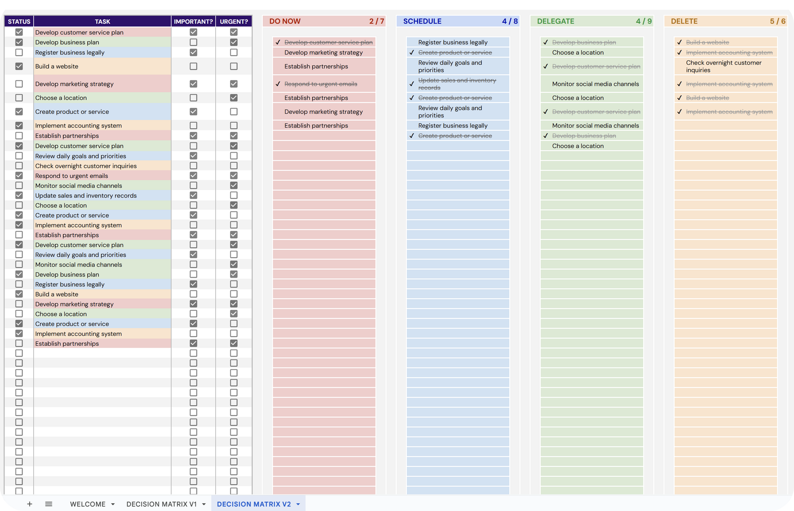 ✔ The Decision Matrix provides a structured approach to task prioritization and management.