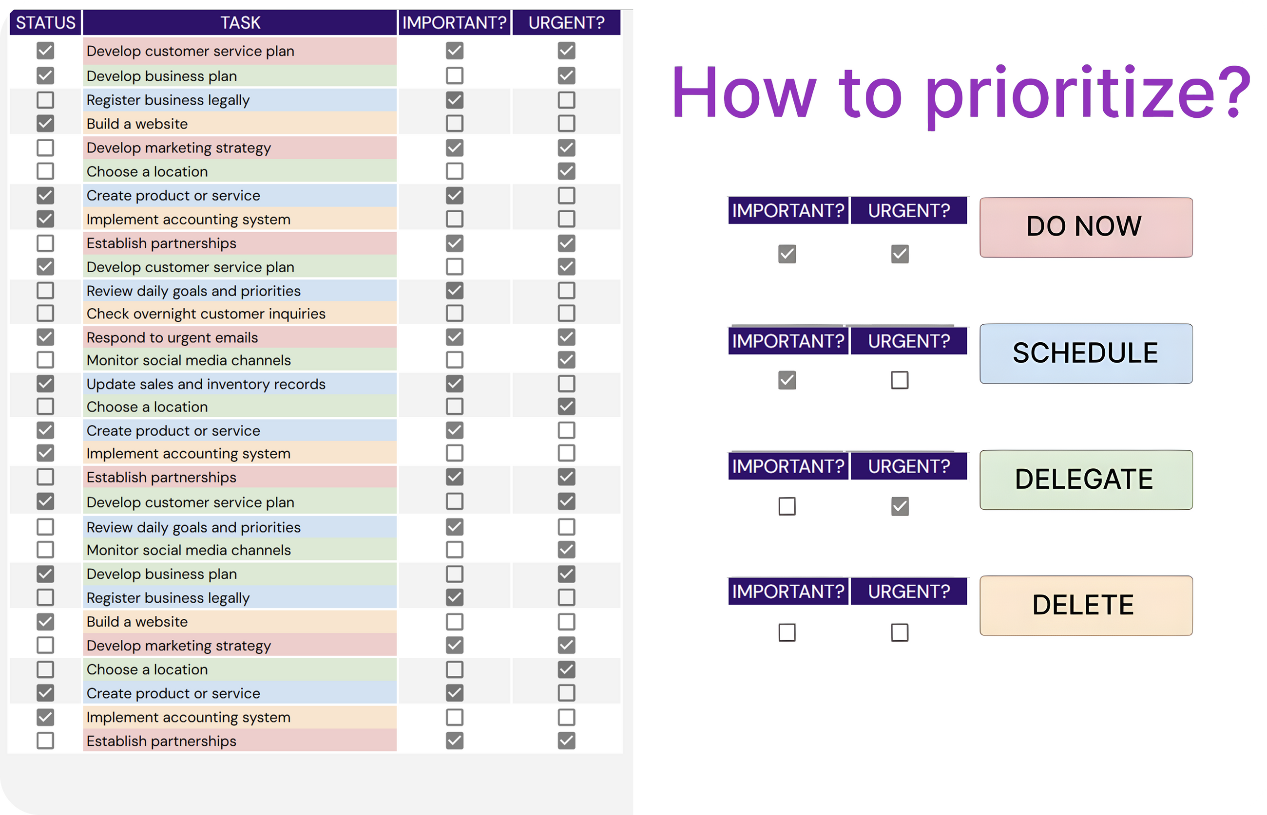 ✔ Do Now: Tackle tasks that are both urgent and important immediately.
