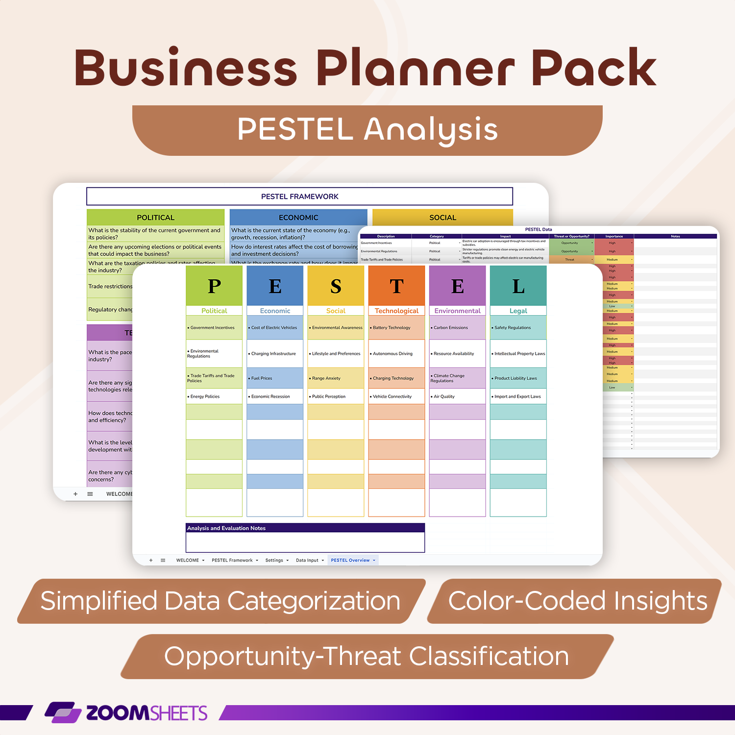 ✔ Detailed Entries: Input and detail specific PESTEL factors.