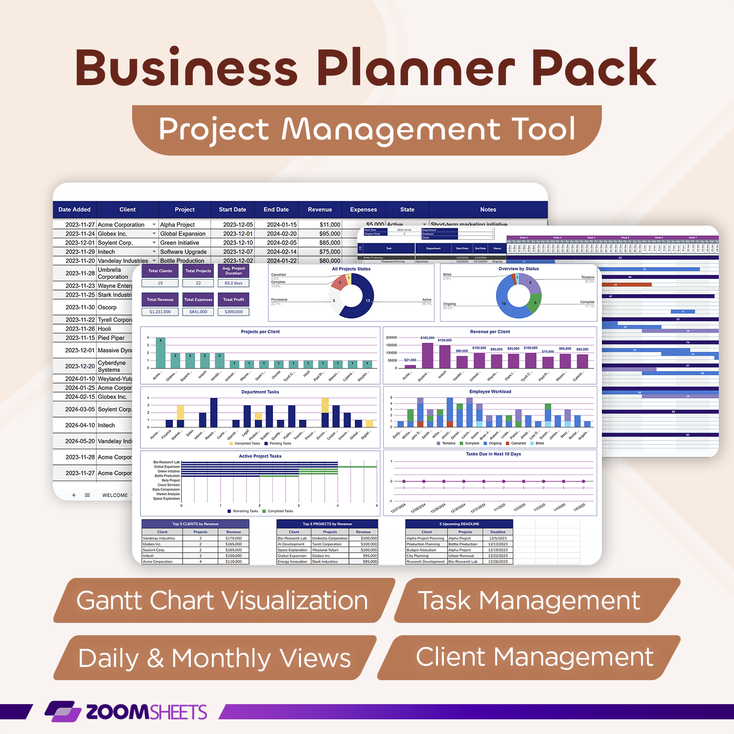 ✔ Performance Rankings & Deadlines: Identify top clients and projects, track impending deadlines.