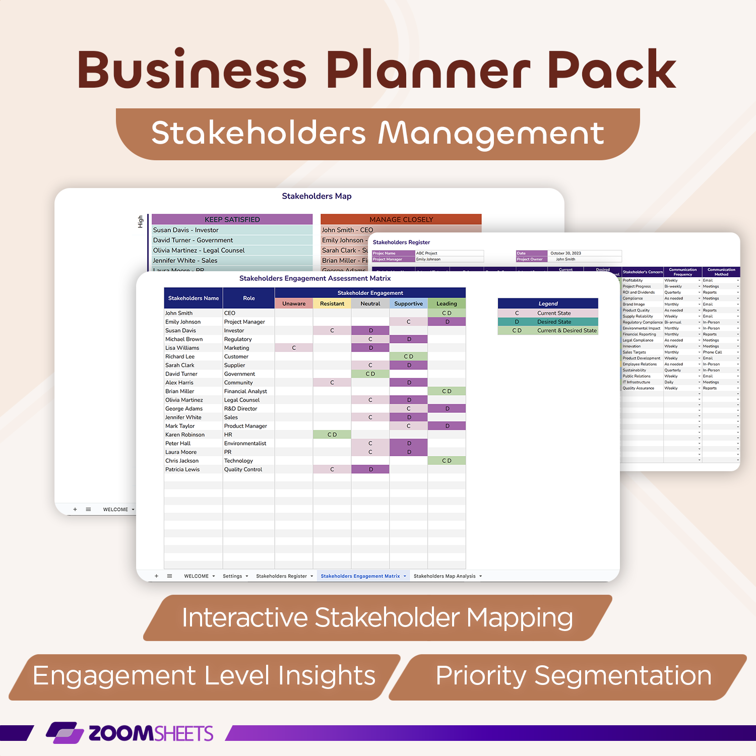✔ Interactive Quadrants:Visualize stakeholder positioning in key areas.