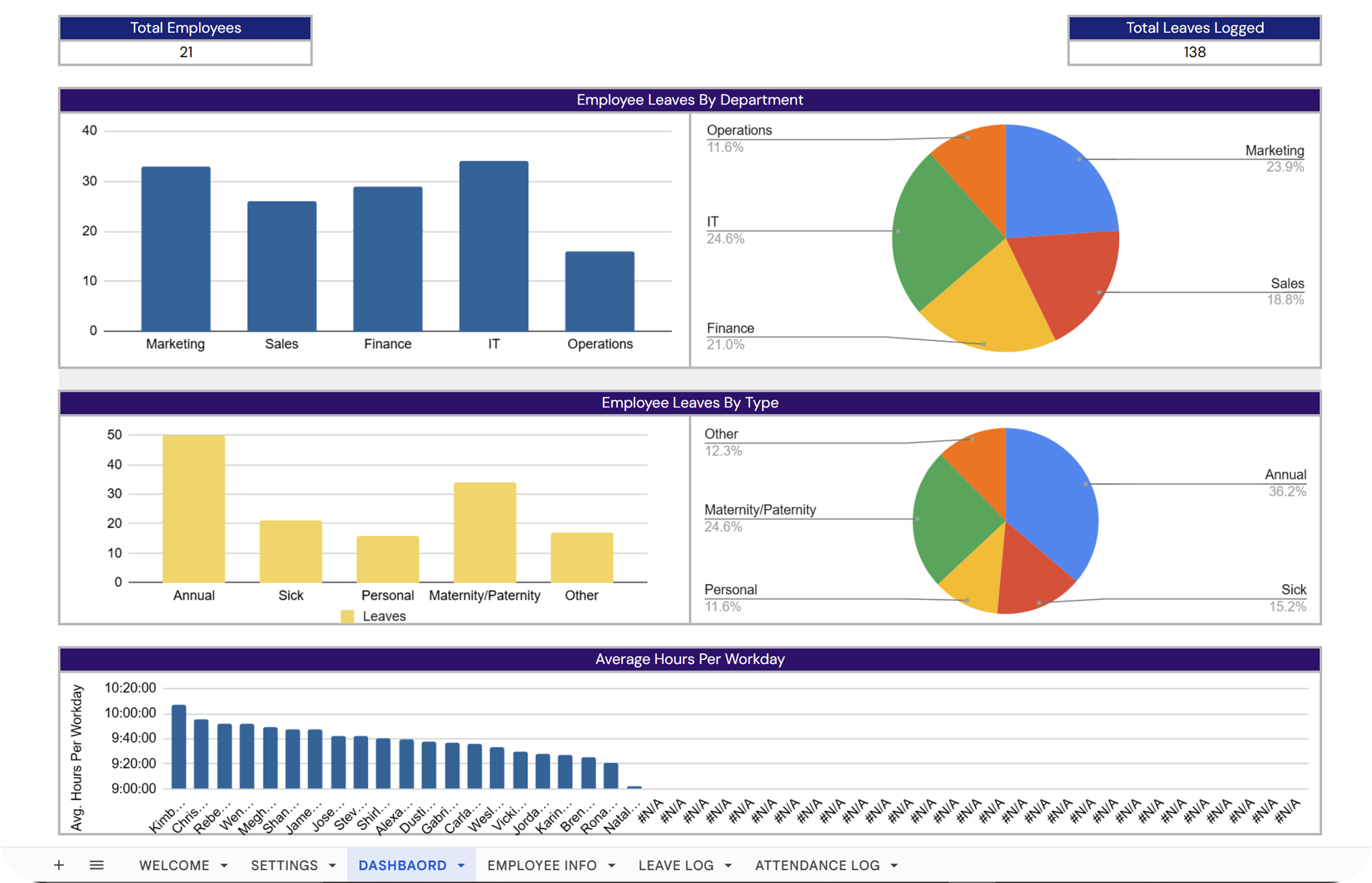 ✔ Monthly Leave Visualization: Break down leave usage by month and department for comprehensive analysis.