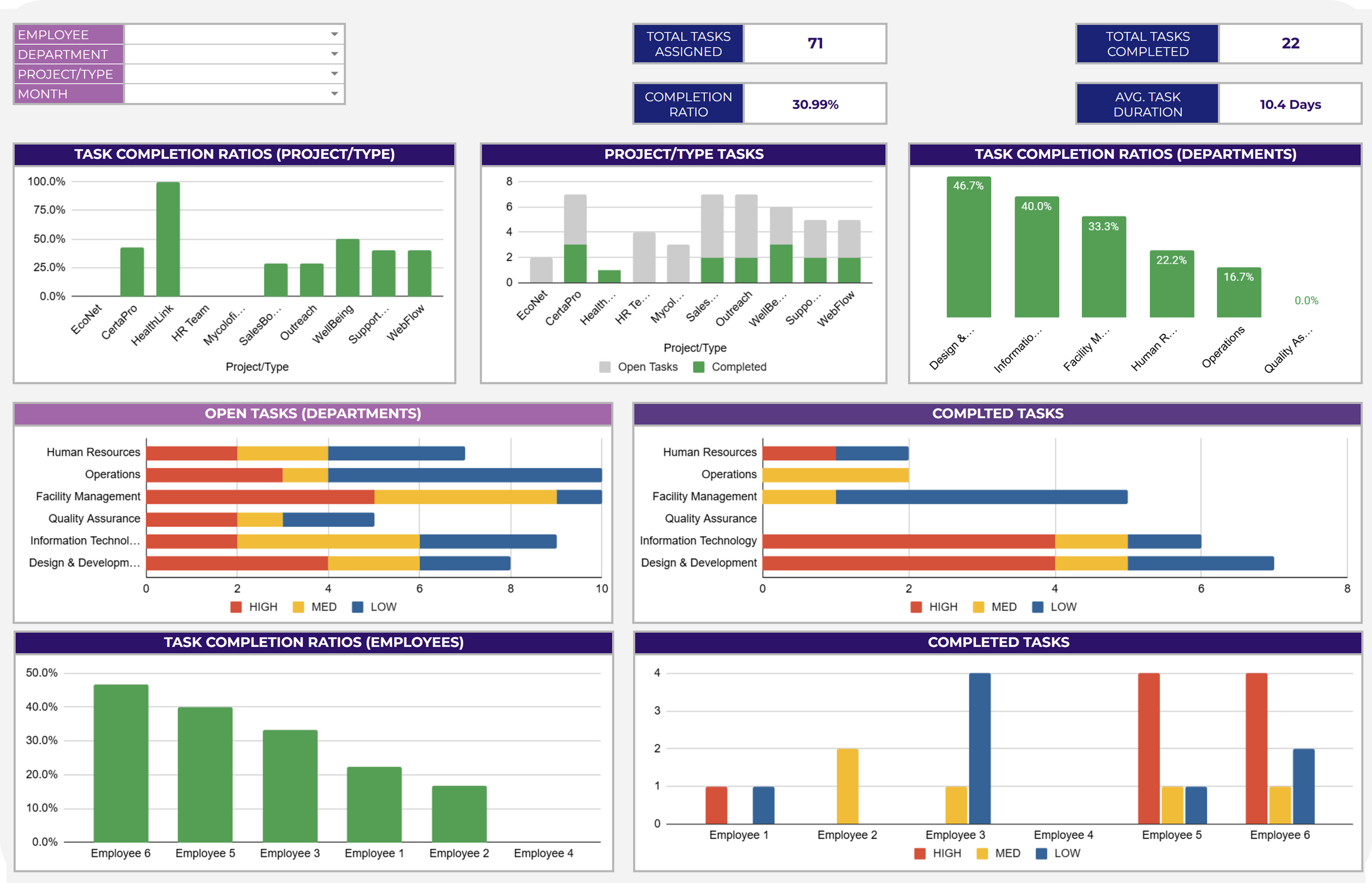 ✔ Use Filters: Analyze tasks by employees or departments.