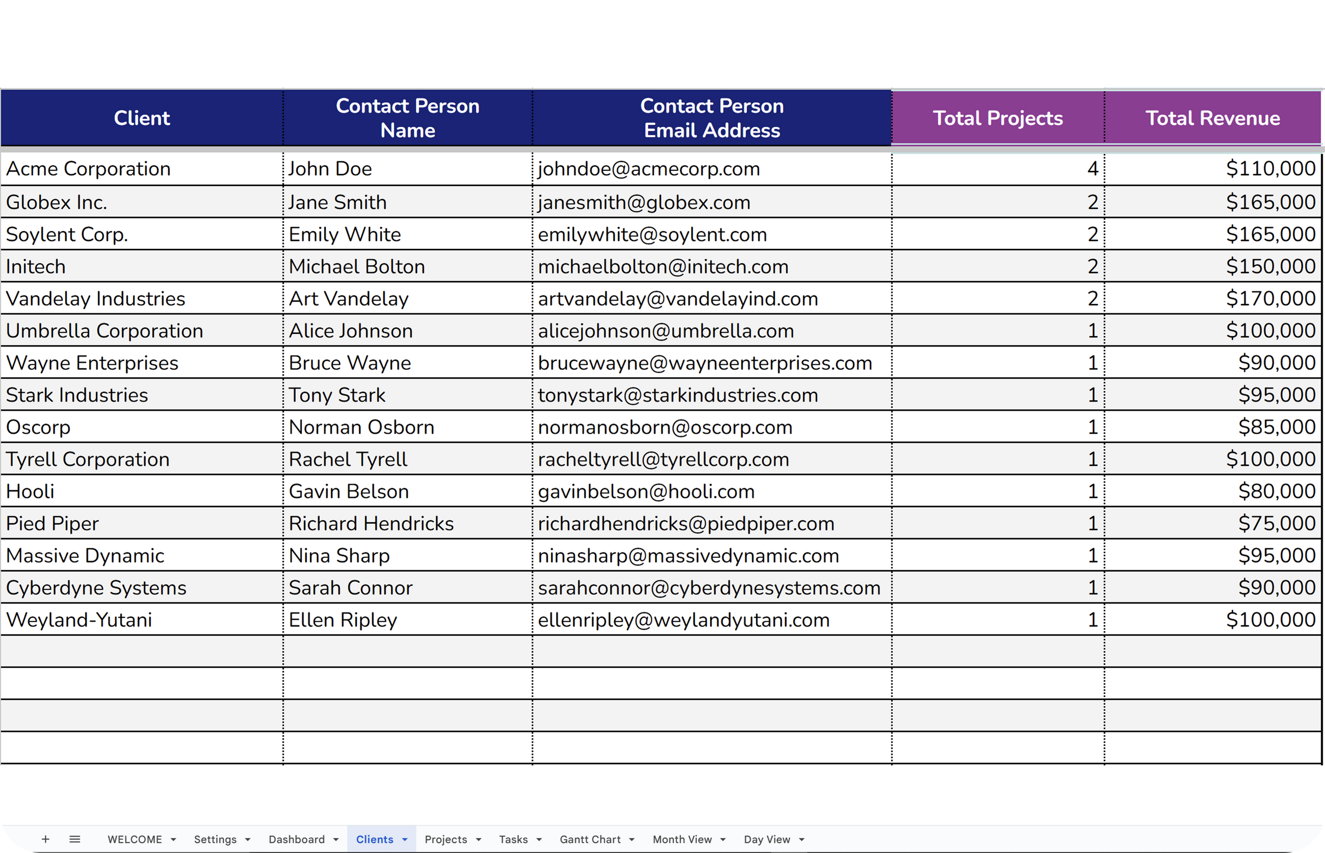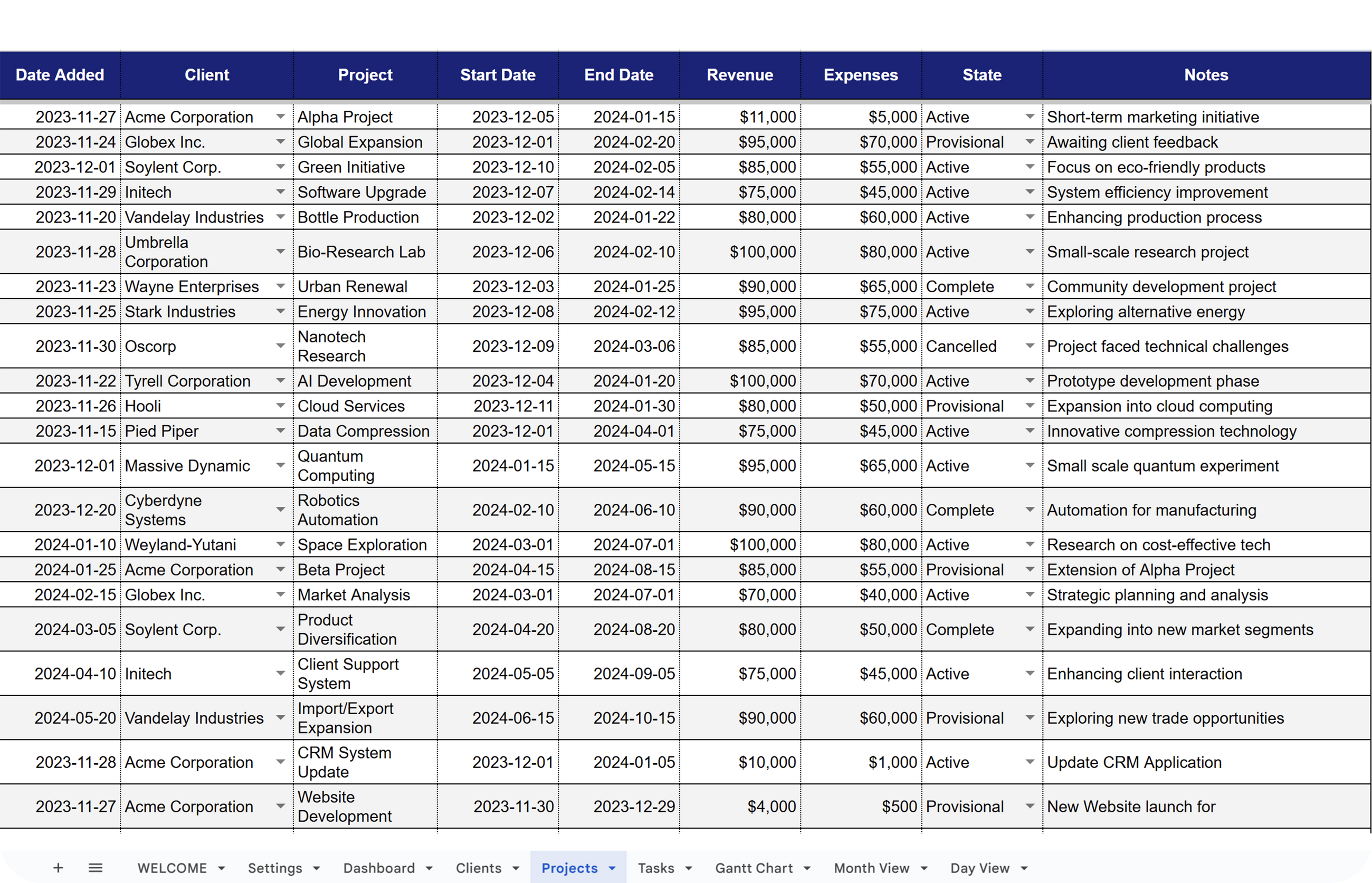 ✔ Financial Tracking: Assess revenue, expenses, and overall profit for each client.