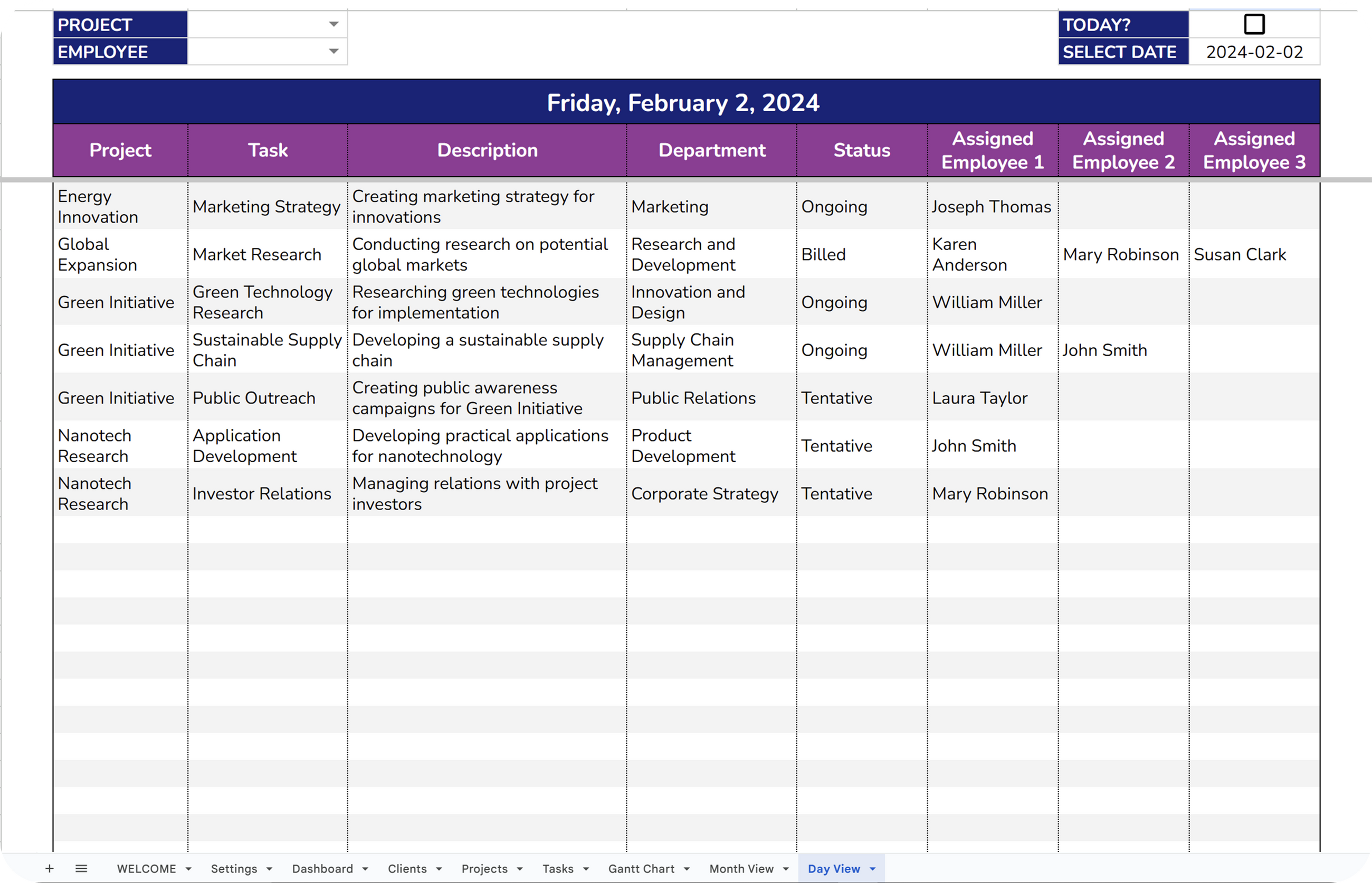 ✔ Filtering Capability: Use various filters to sort and to see extended timelines.