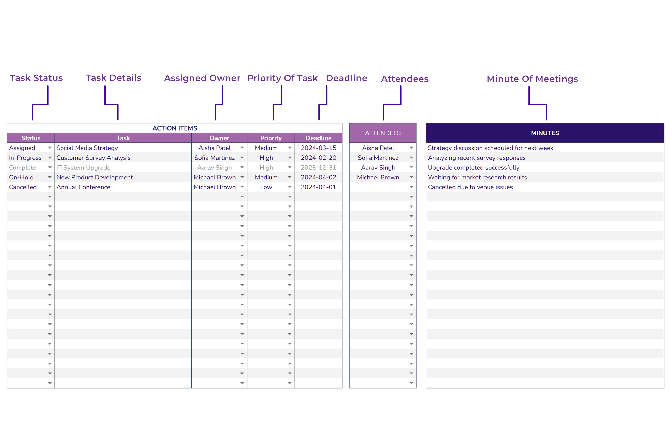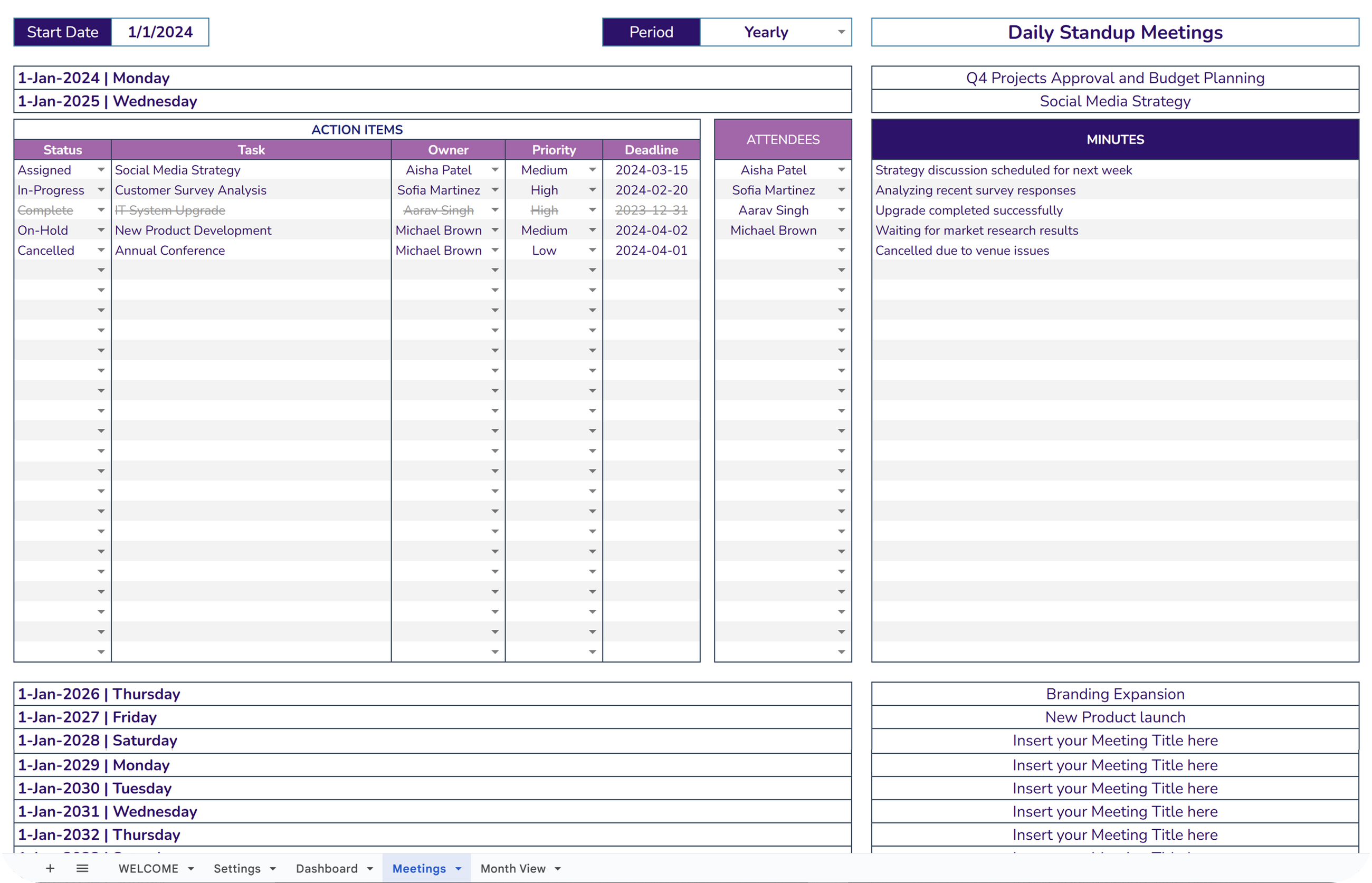 ✔ Expandable View: Expand the meeting tab to log all the meeting details.