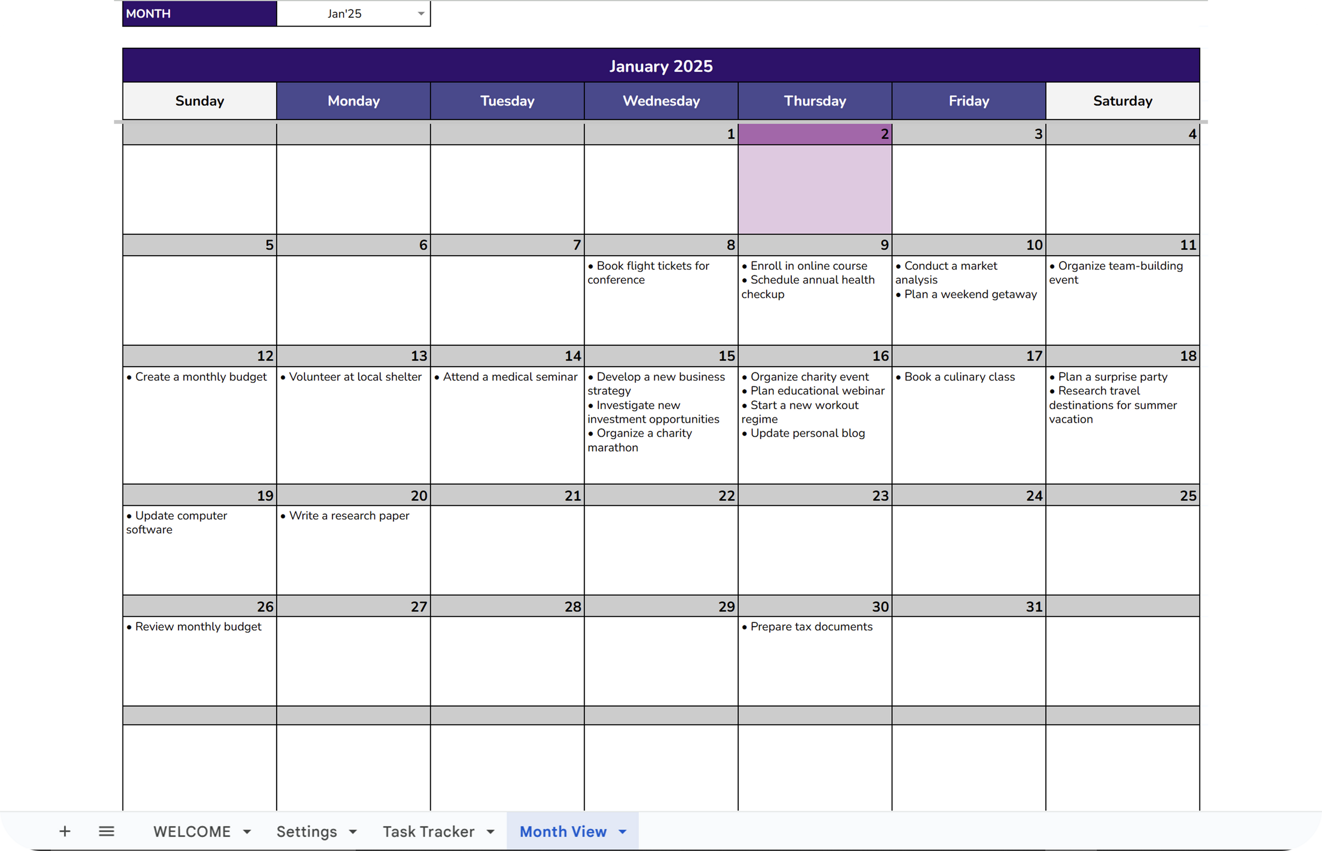 ✔ Auto Progress Highlight: Change cell colors based on completion with a simple drop-down.