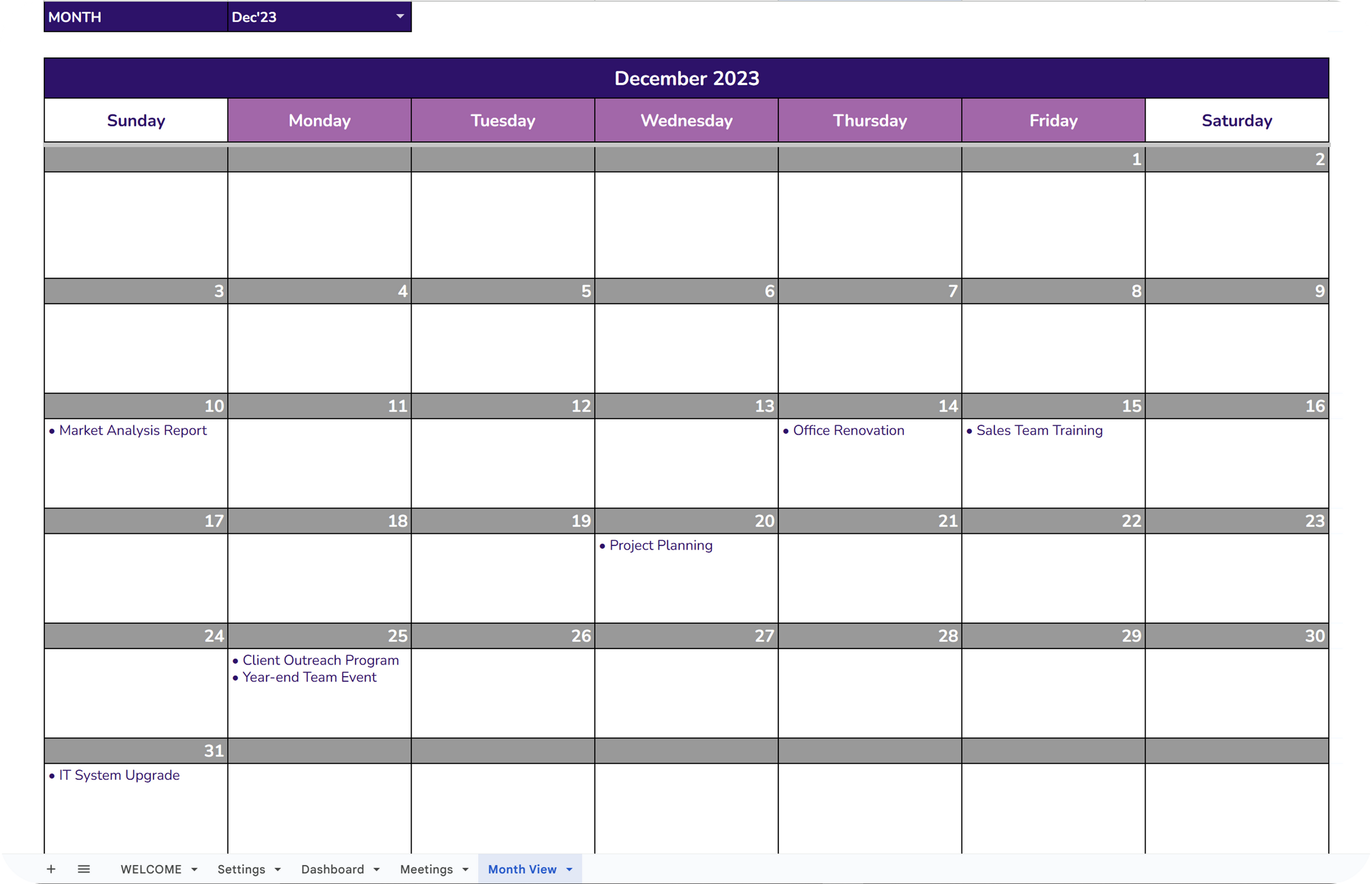 ✔ Filter Option: Focus on specific month's tasks for targeted planning.