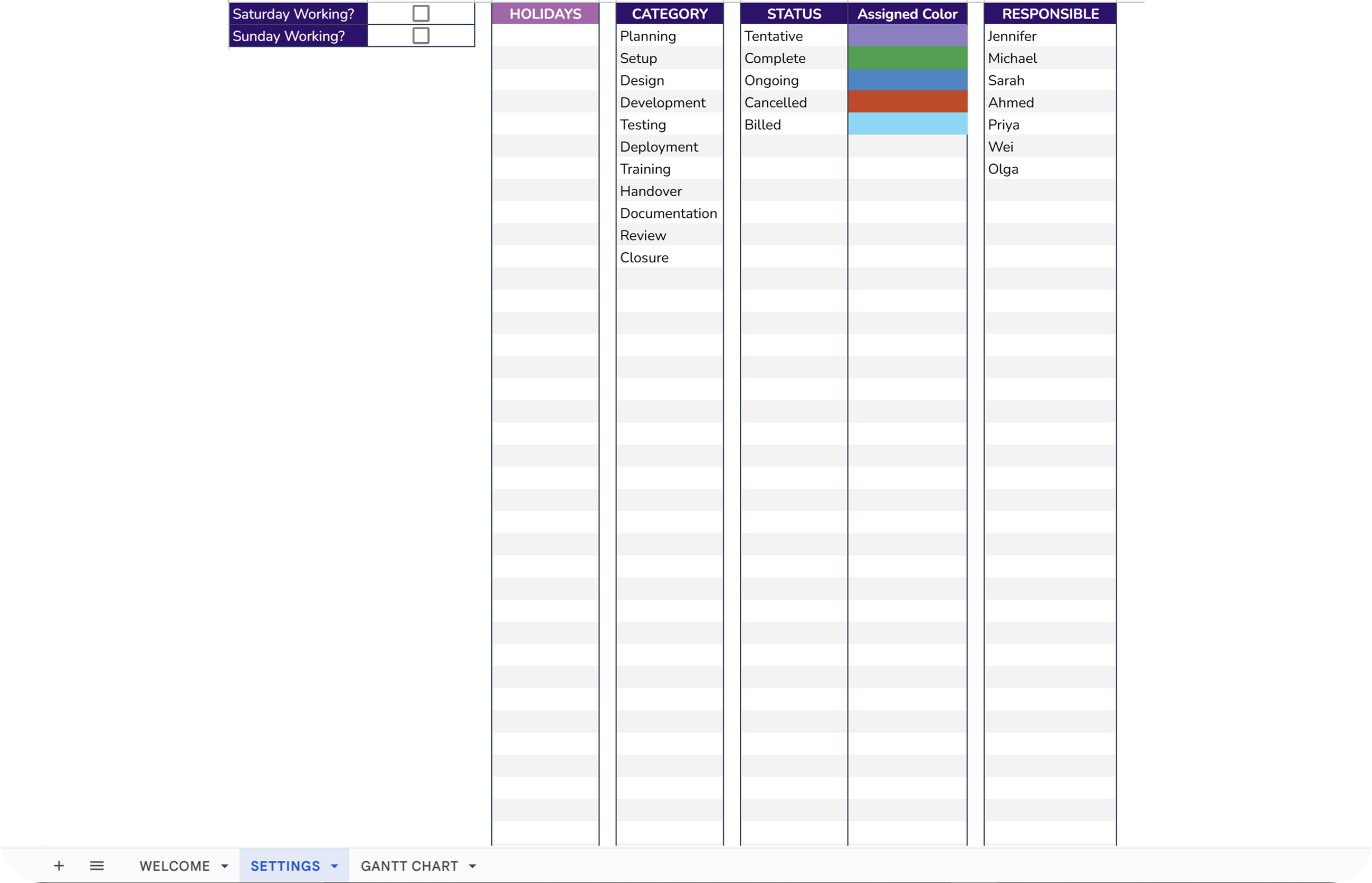✔ Gantt Start Date: Define the project's beginning for a clear execution timeline.