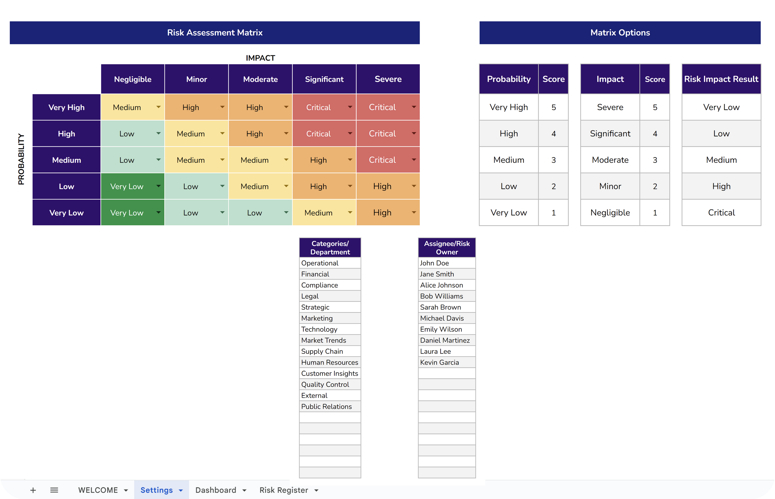 ✔ Matrix Customization: Tailor risk levels and scoring.