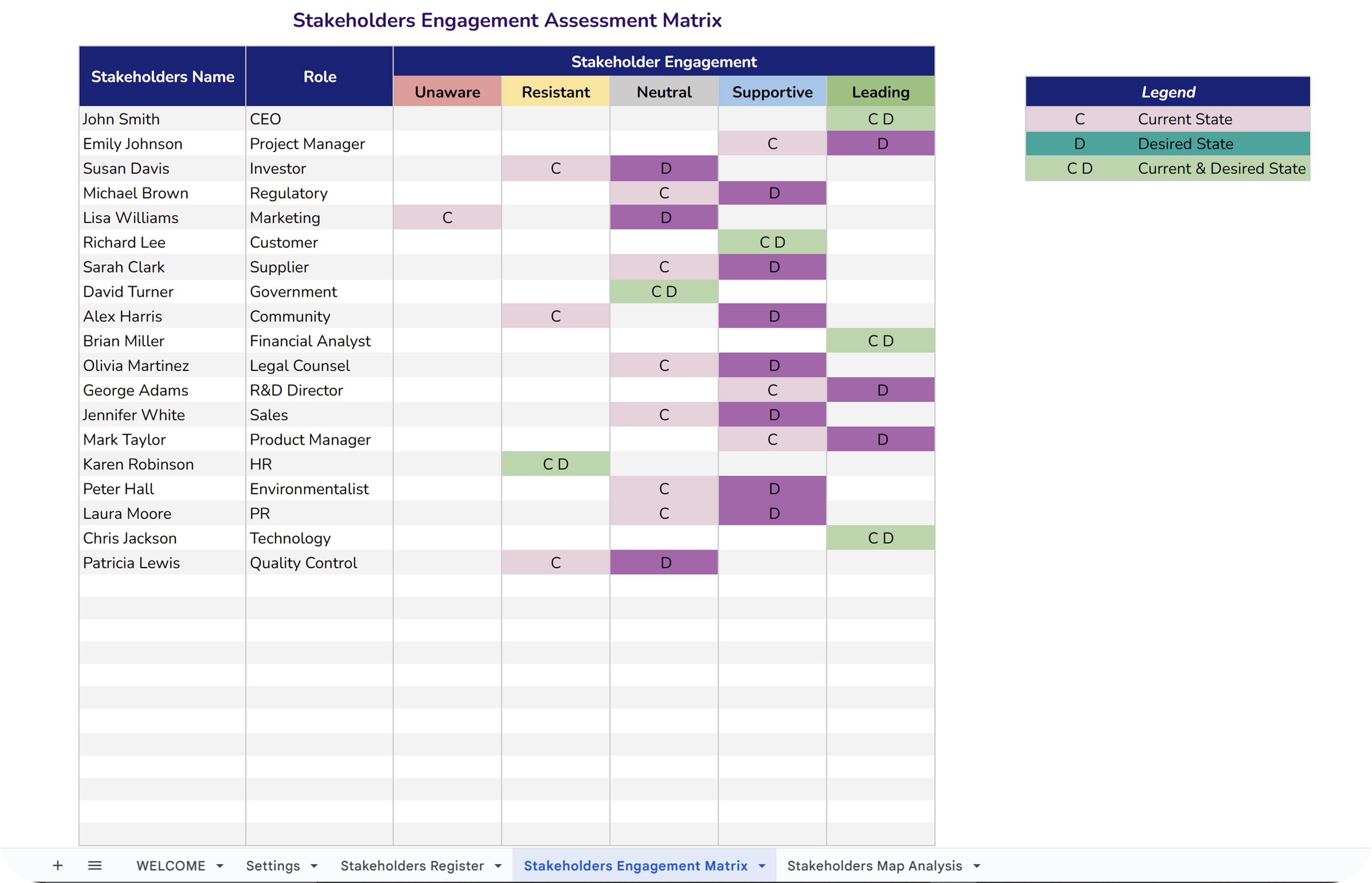 ✔ Interactive Quadrants:Visualize stakeholder positioning in key areas.