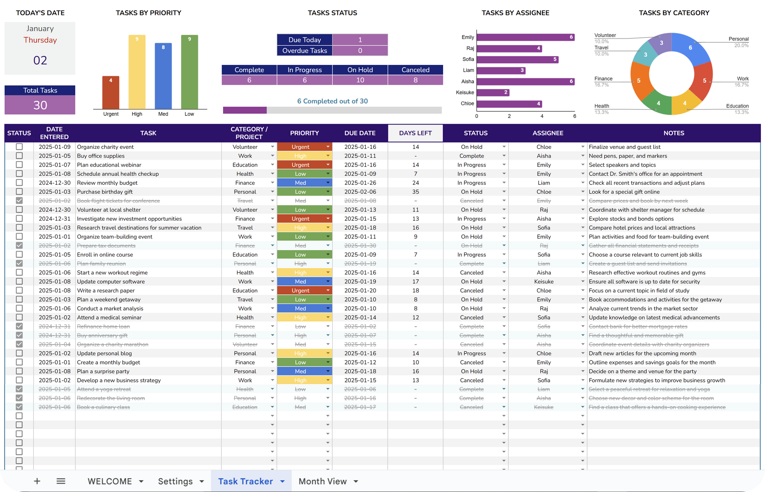 ✔ Status and Graphs: Visualize task progress and distribution all in one place.