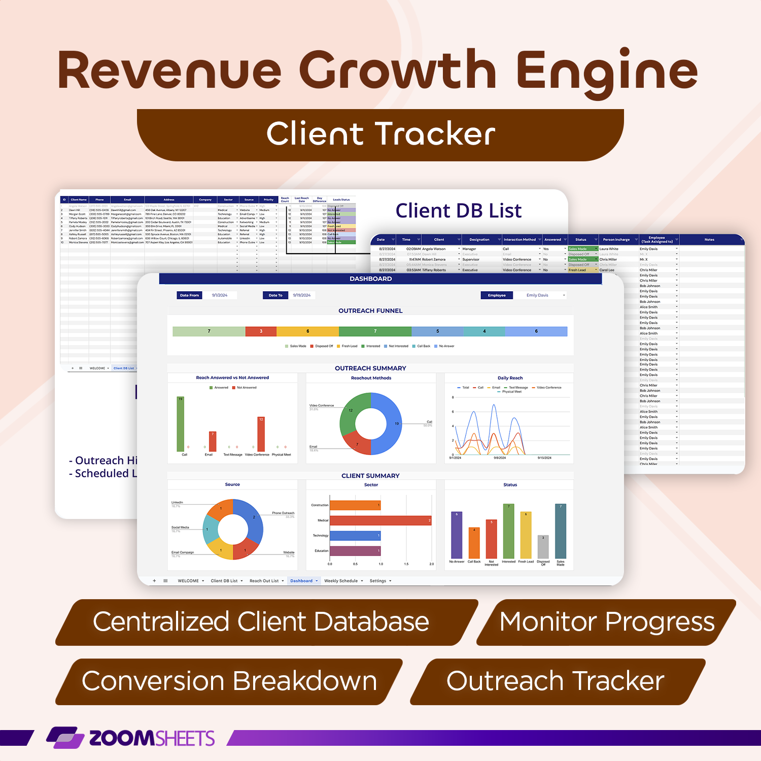 ✔ Personalize your tracker with your own type of clients, their source, associated priority, client interest status, reach-out method, and employees.