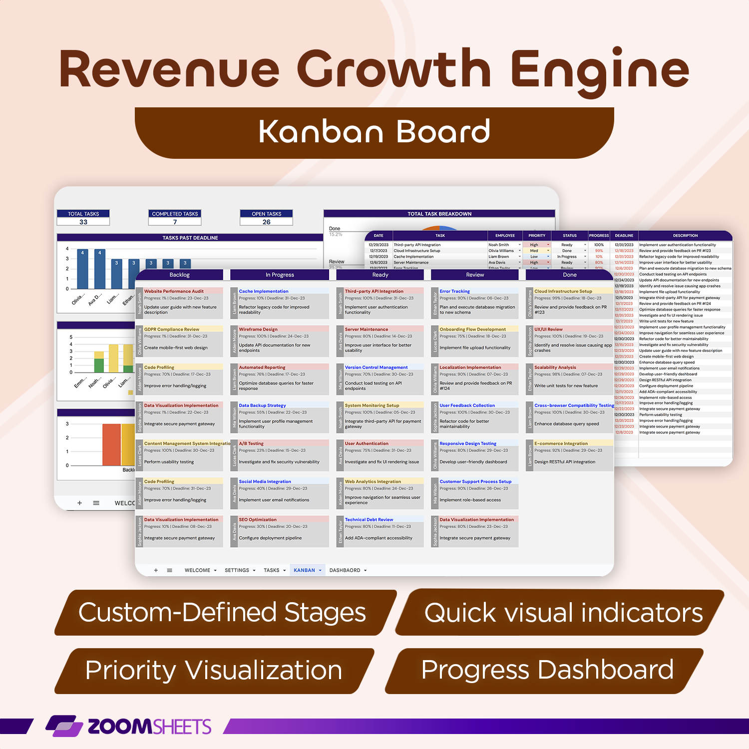 Dynamic Features: Task cards instantly update to reflect changes made in the Tasks tab, ensuring real-time task management and visualization.