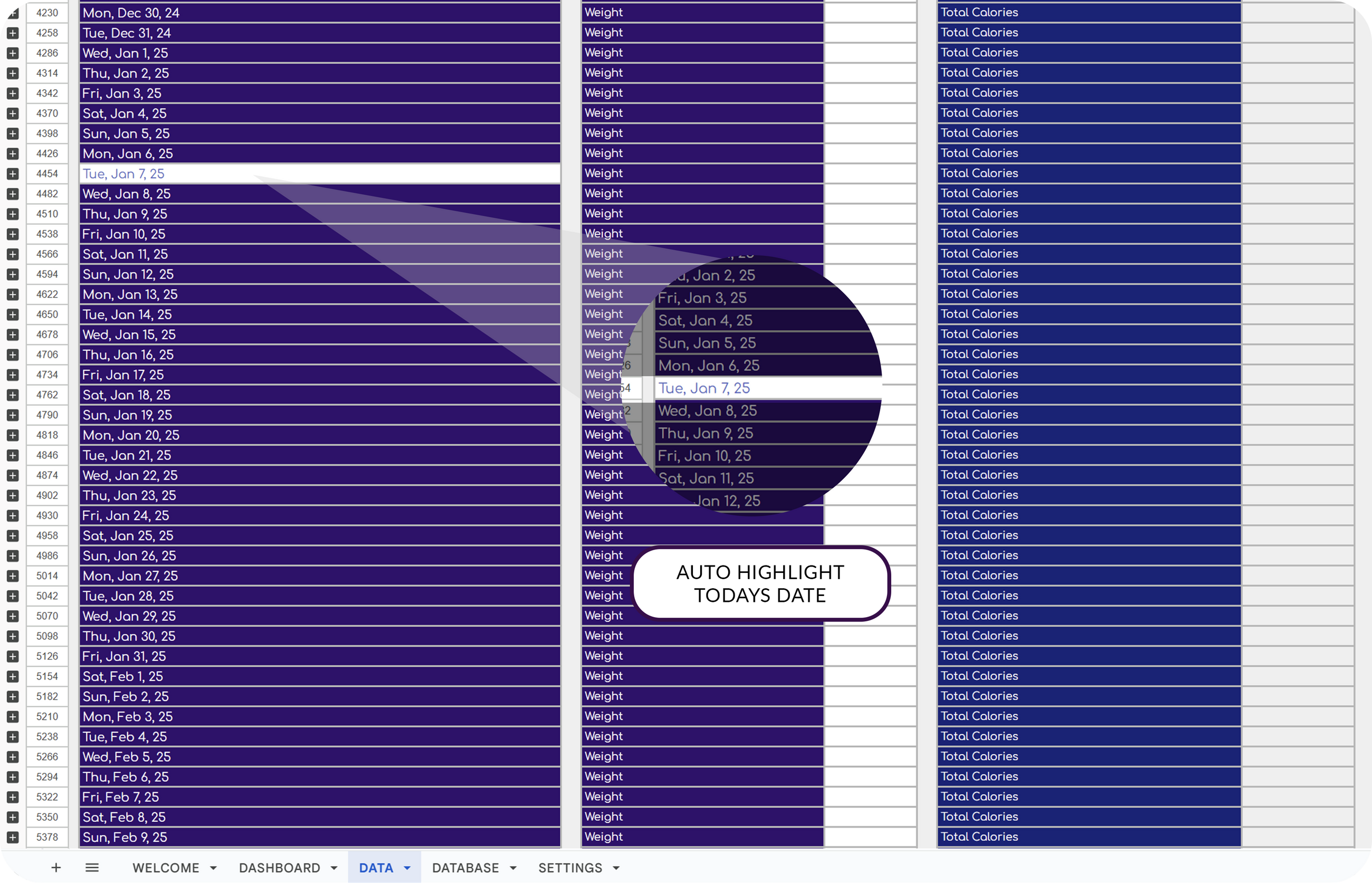 ✔ View daily weight and calorie intake at a glance.