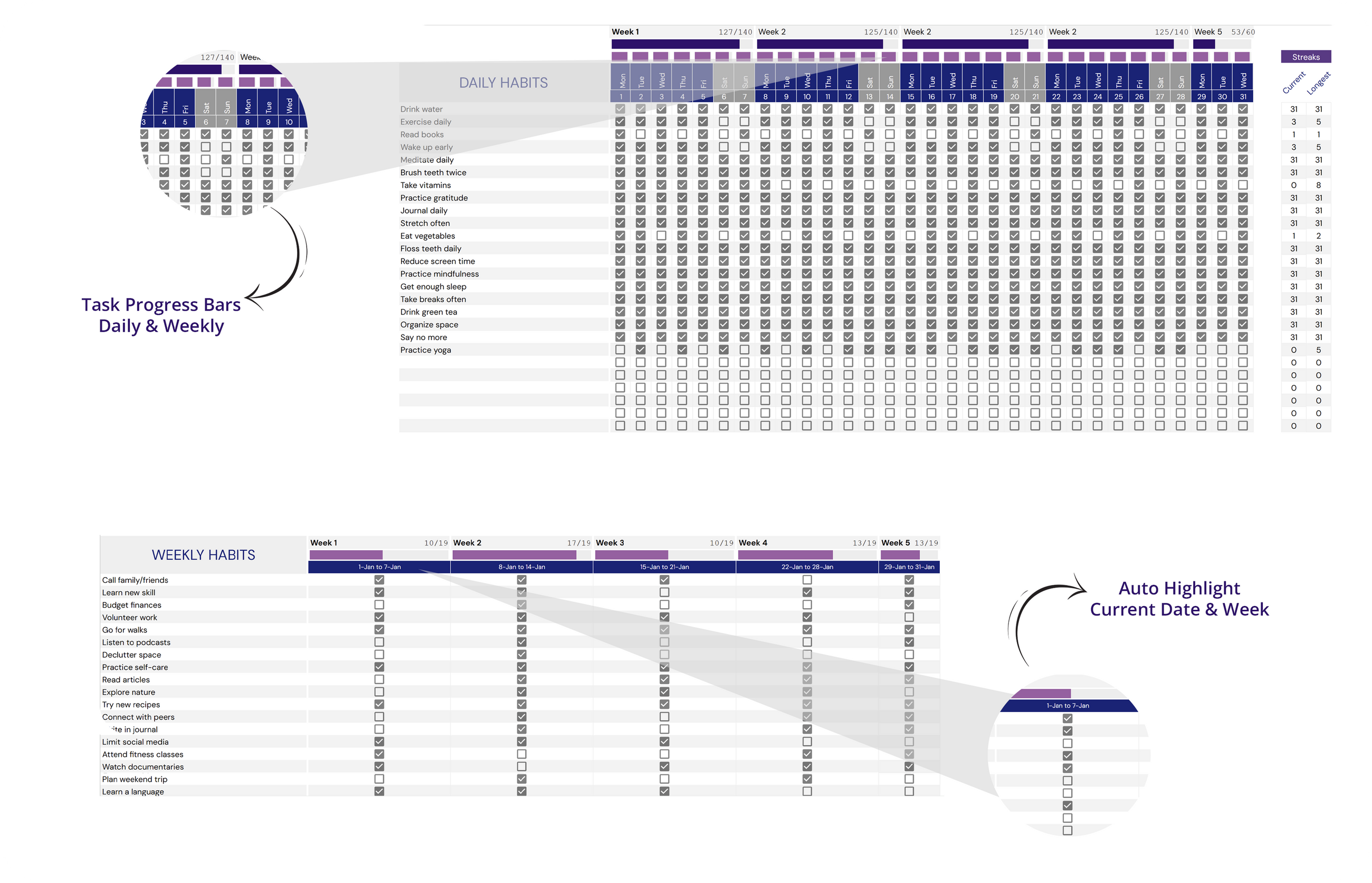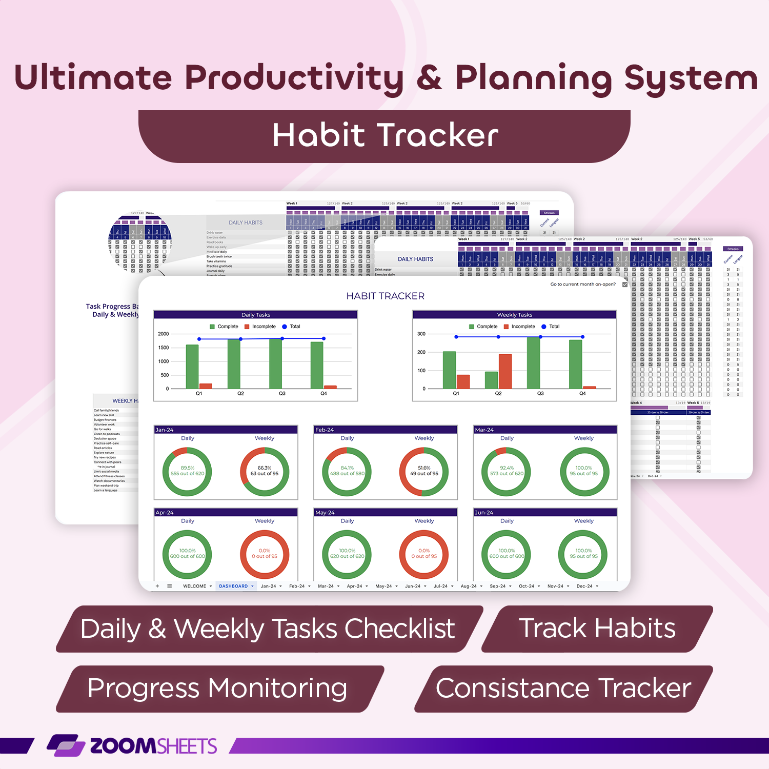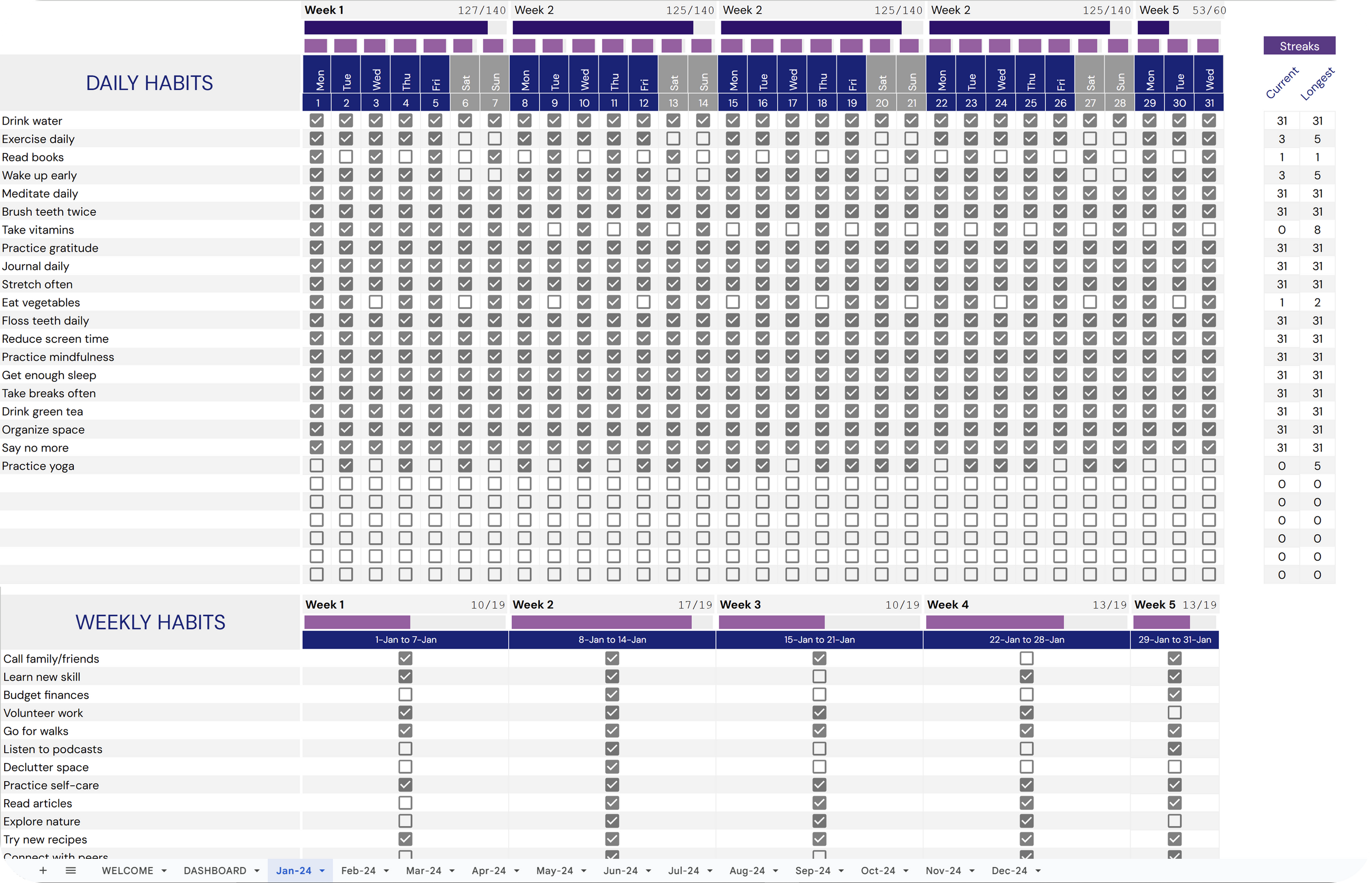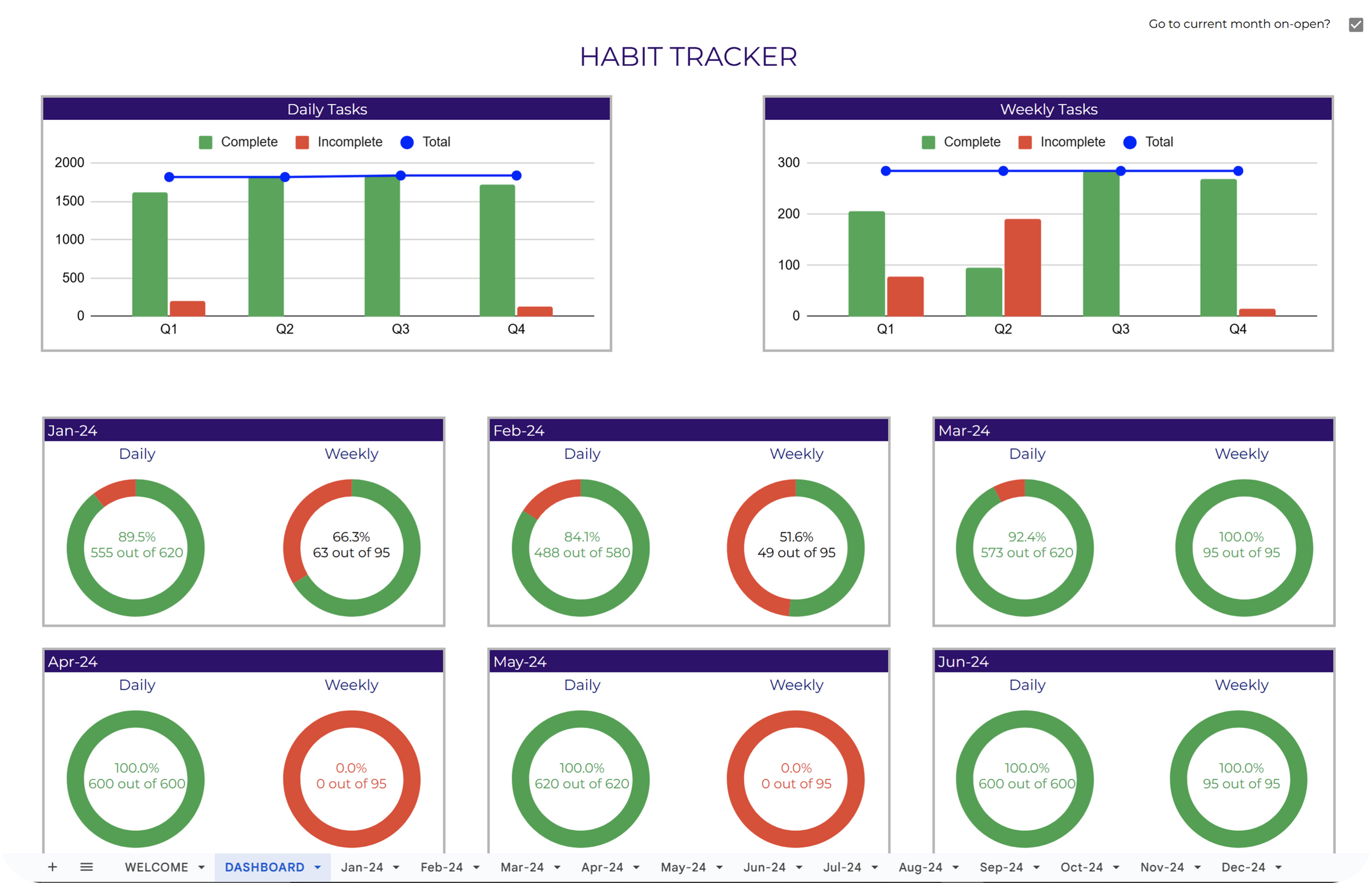 ✔ Monthly Tracking: Plan and track habits and tasks effortlessly with 12 dedicated tabs for each month of the year.