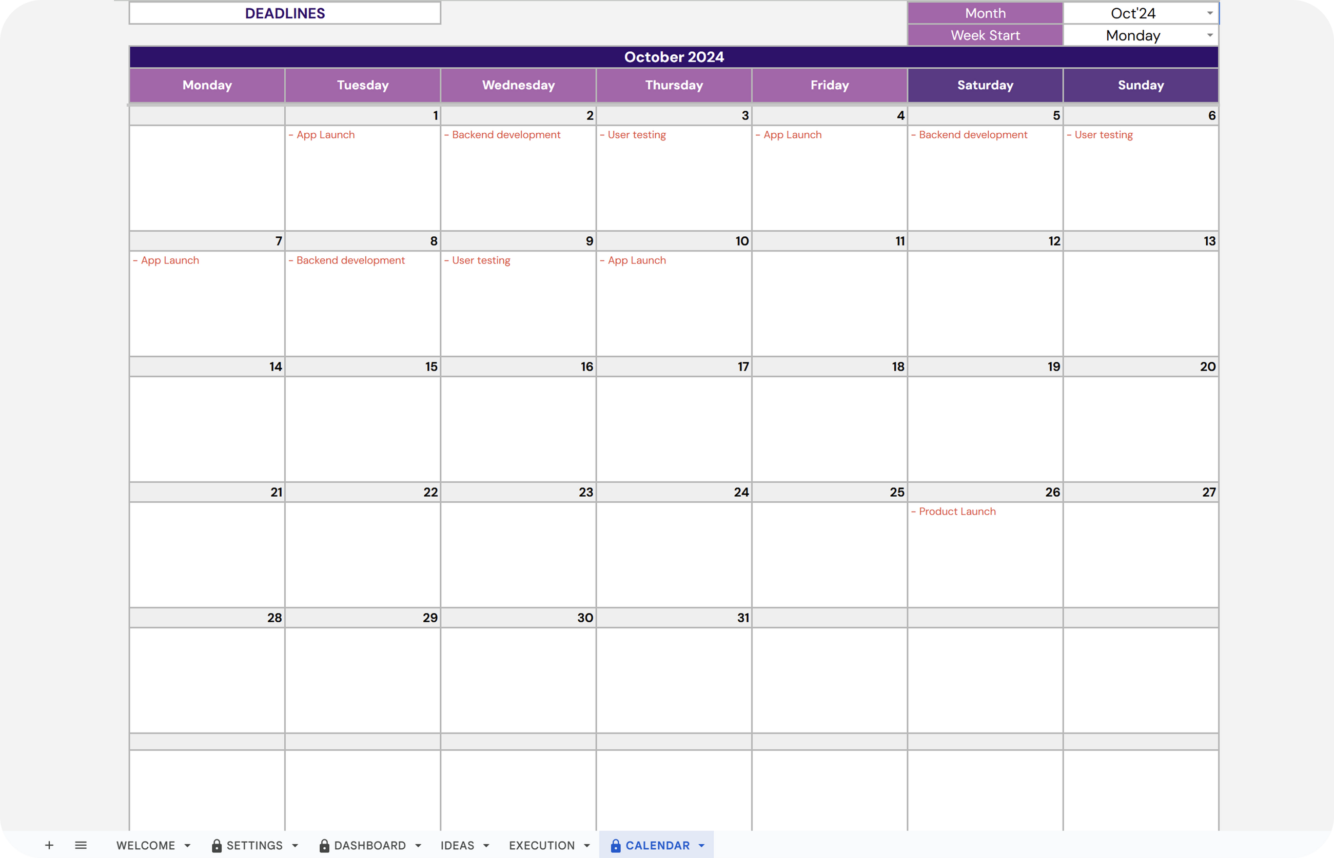 ✔ Auto-Highlighting: Highlights automatically the current date and week to ensure clarity in tracking, keeping you on top of your schedule.