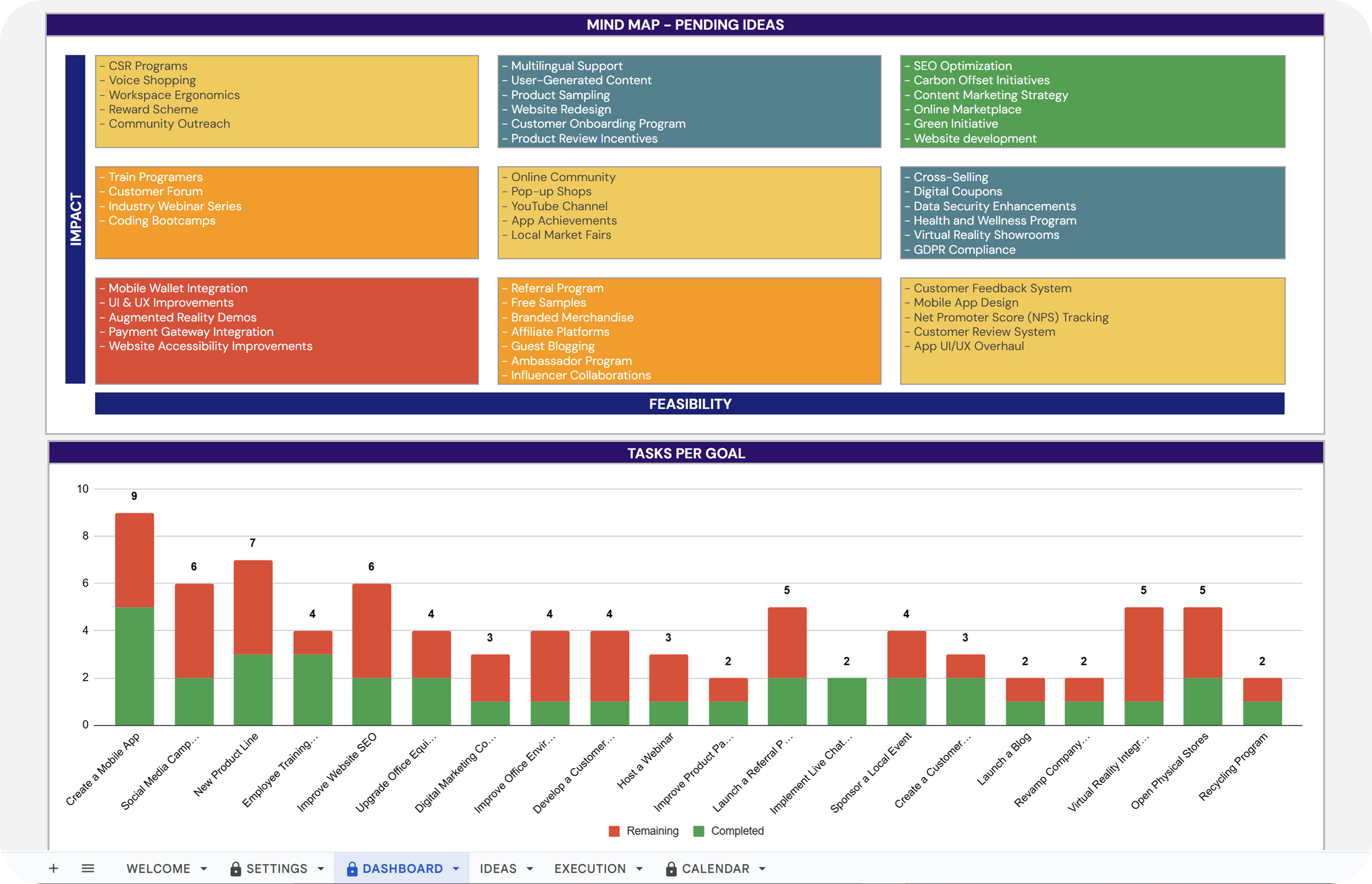 ✔ Gain a clear overview of your pending ideas and prioritize them based on impact and feasibility with the mind map feature.