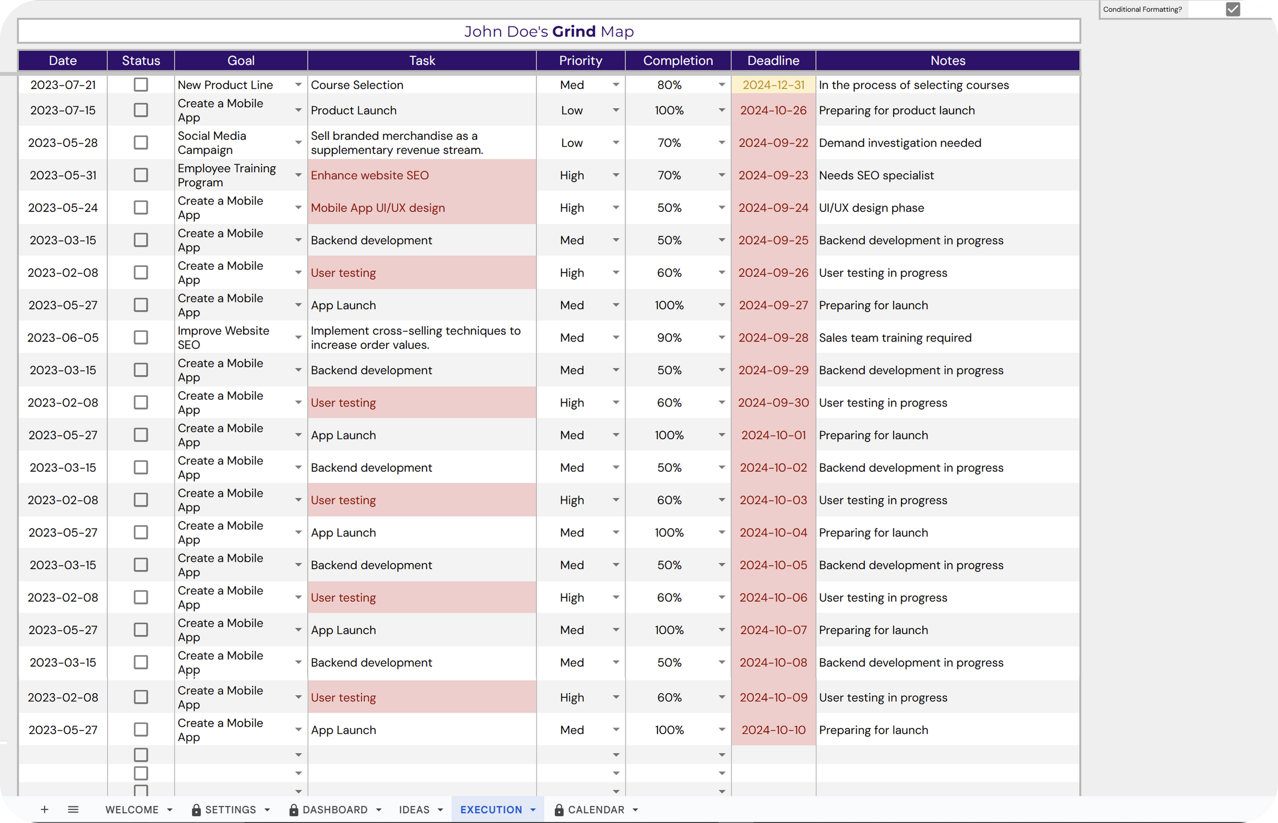 ✔ Set deadlines, prioritize tasks, and track progress for each goal.