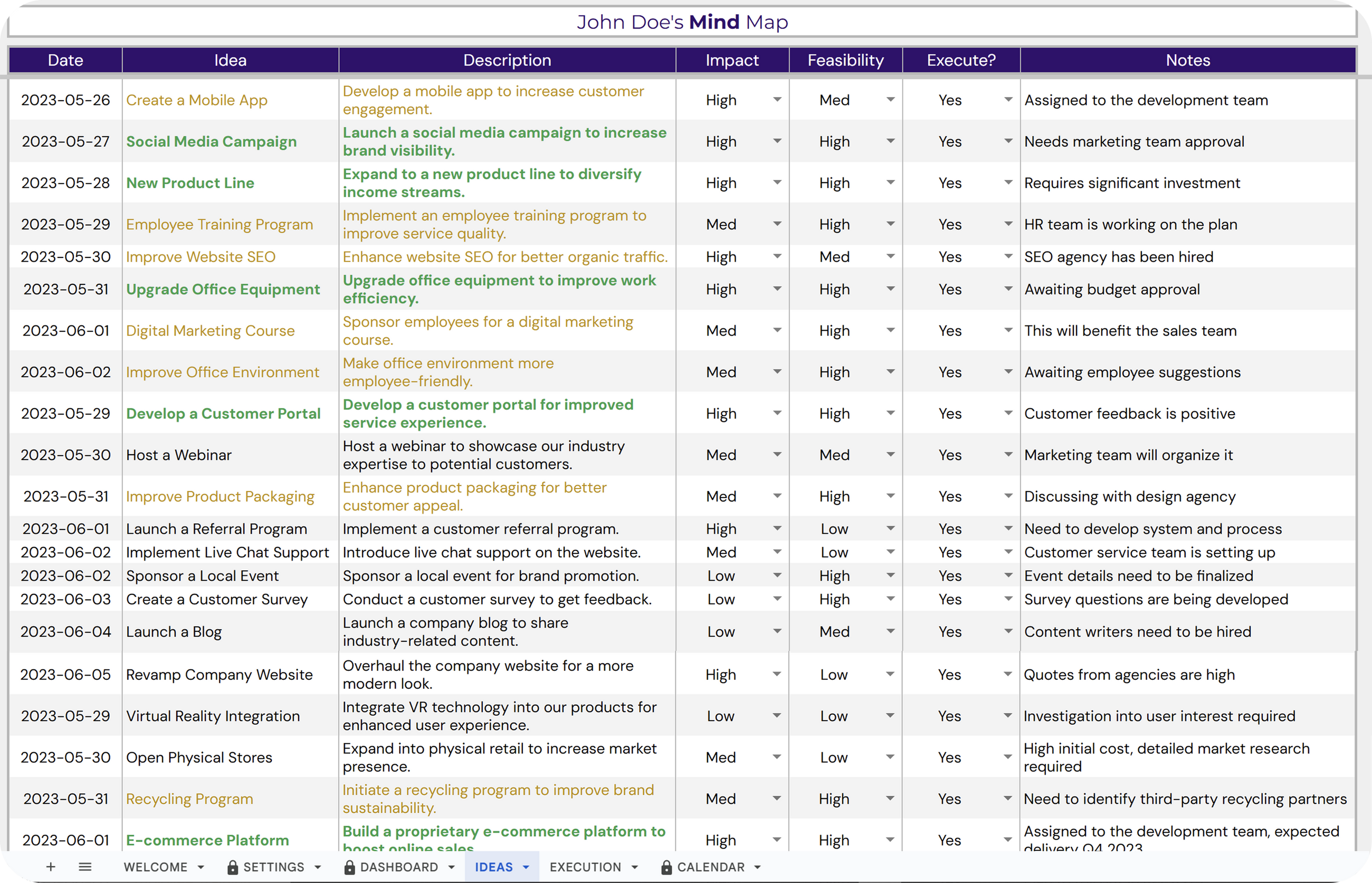 ✔ Prioritize ideas based on their potential impact and feasibility, and track their execution status for streamlined idea management.