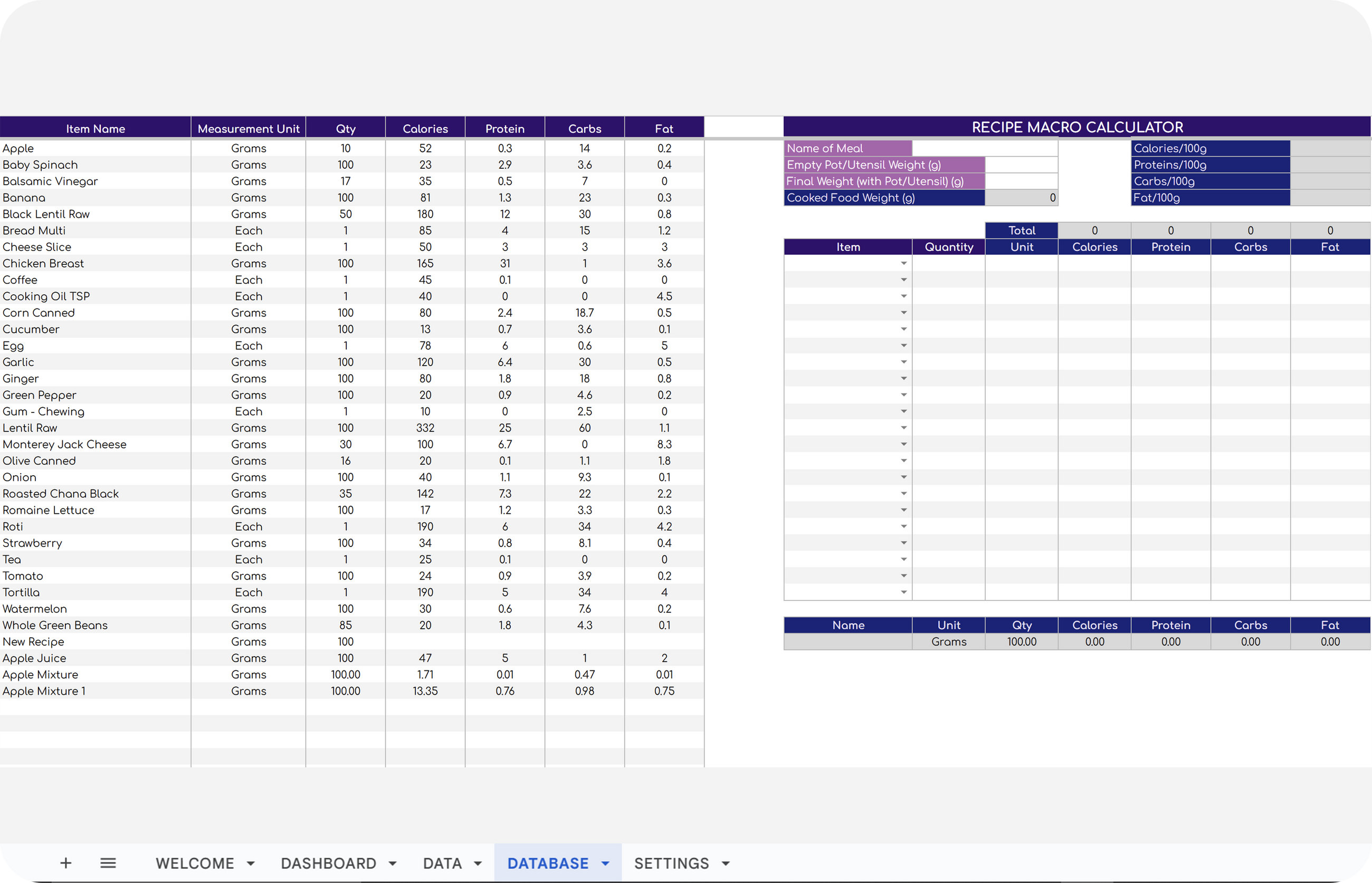 ✔ Create and save recipes with the Macro Calculator.