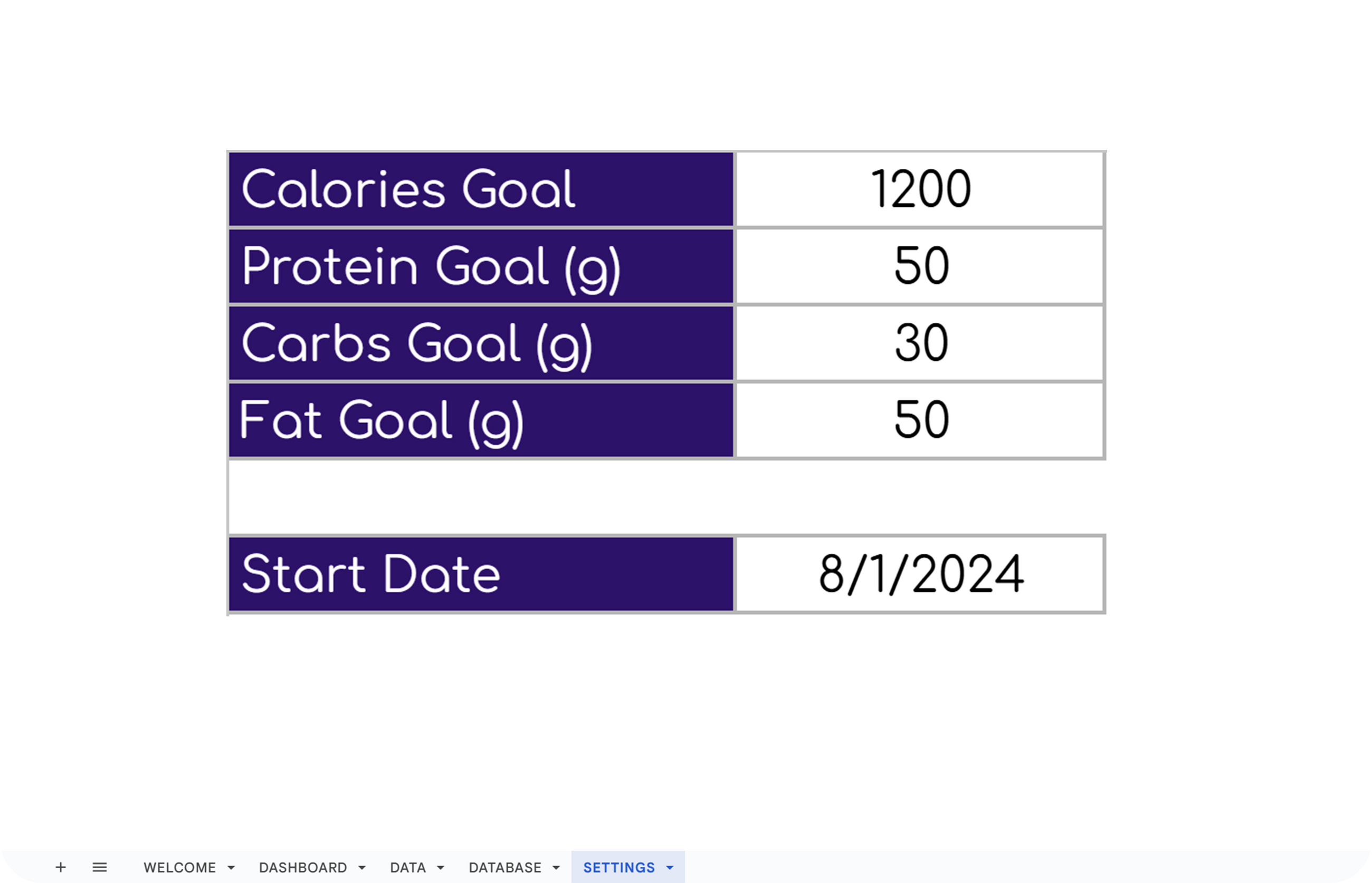 ✔ Set daily targets for calories, protein, carbs, and fat.