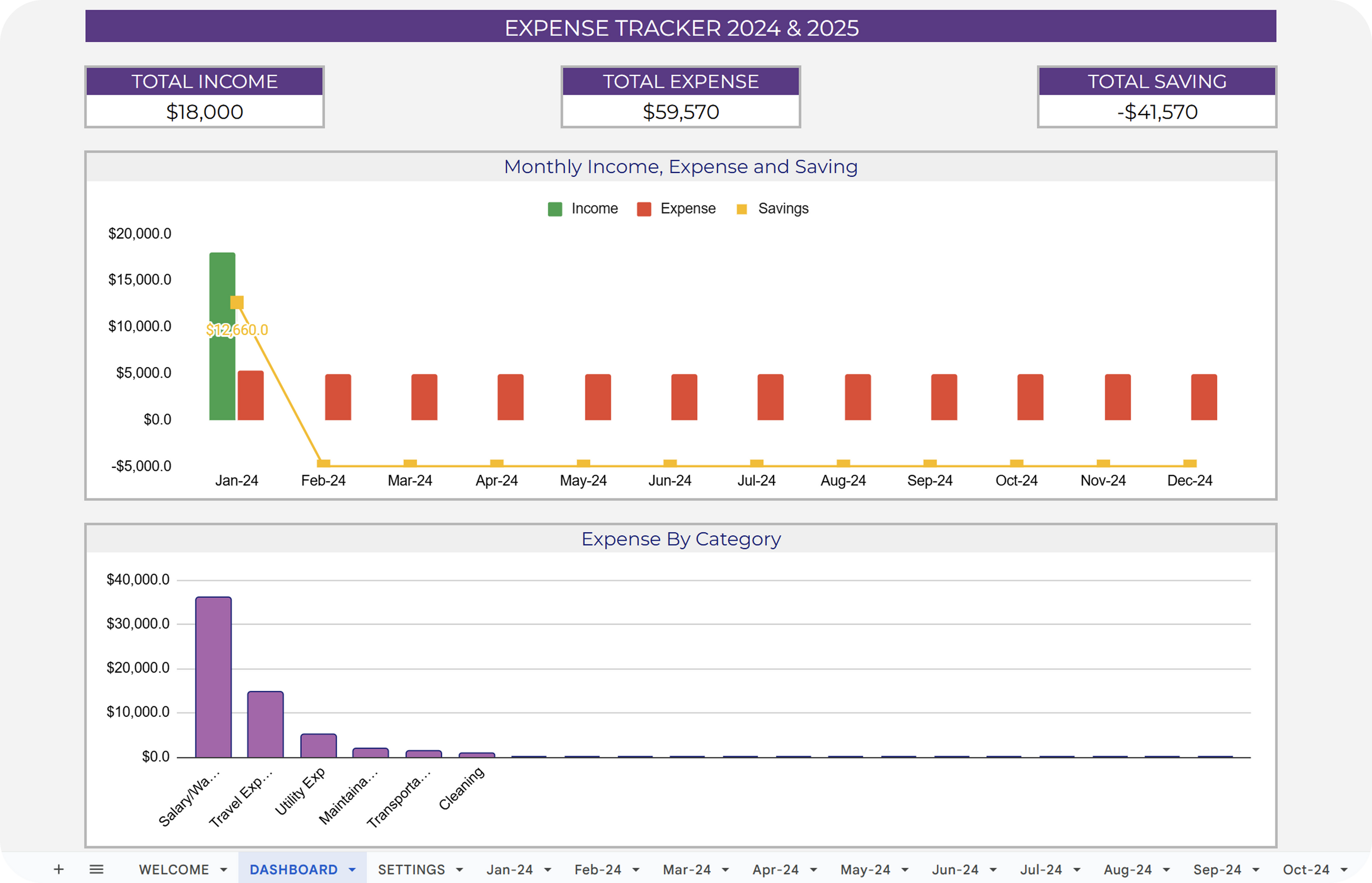 ✔ Analyze yearly expenses divided into different categories.