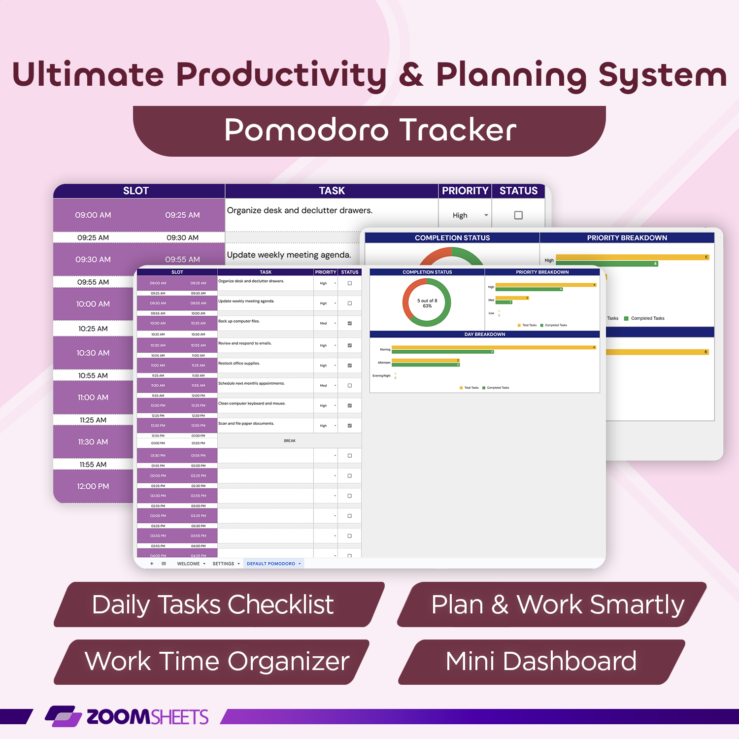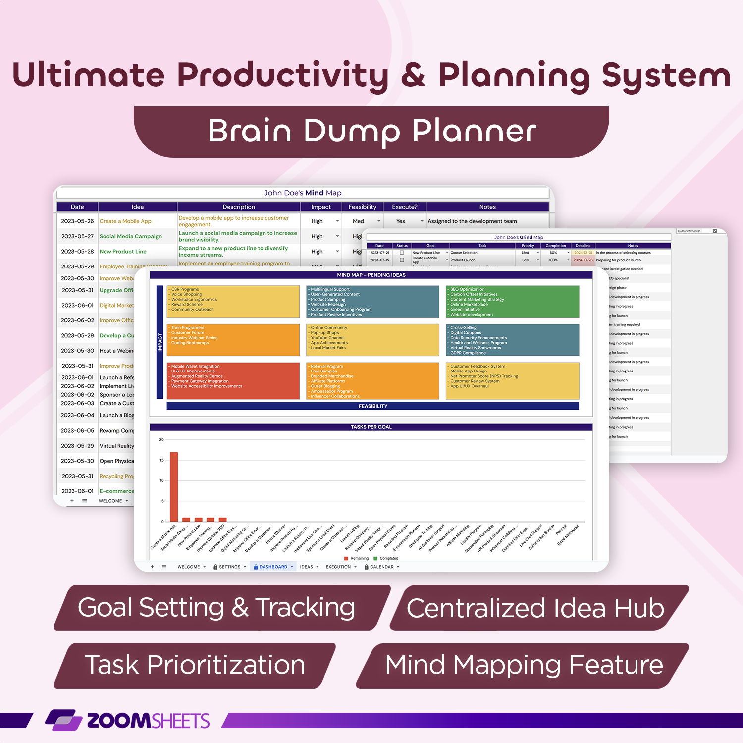✔ Track goal progress visually and prioritize tasks effectively with the task prioritization matrix.