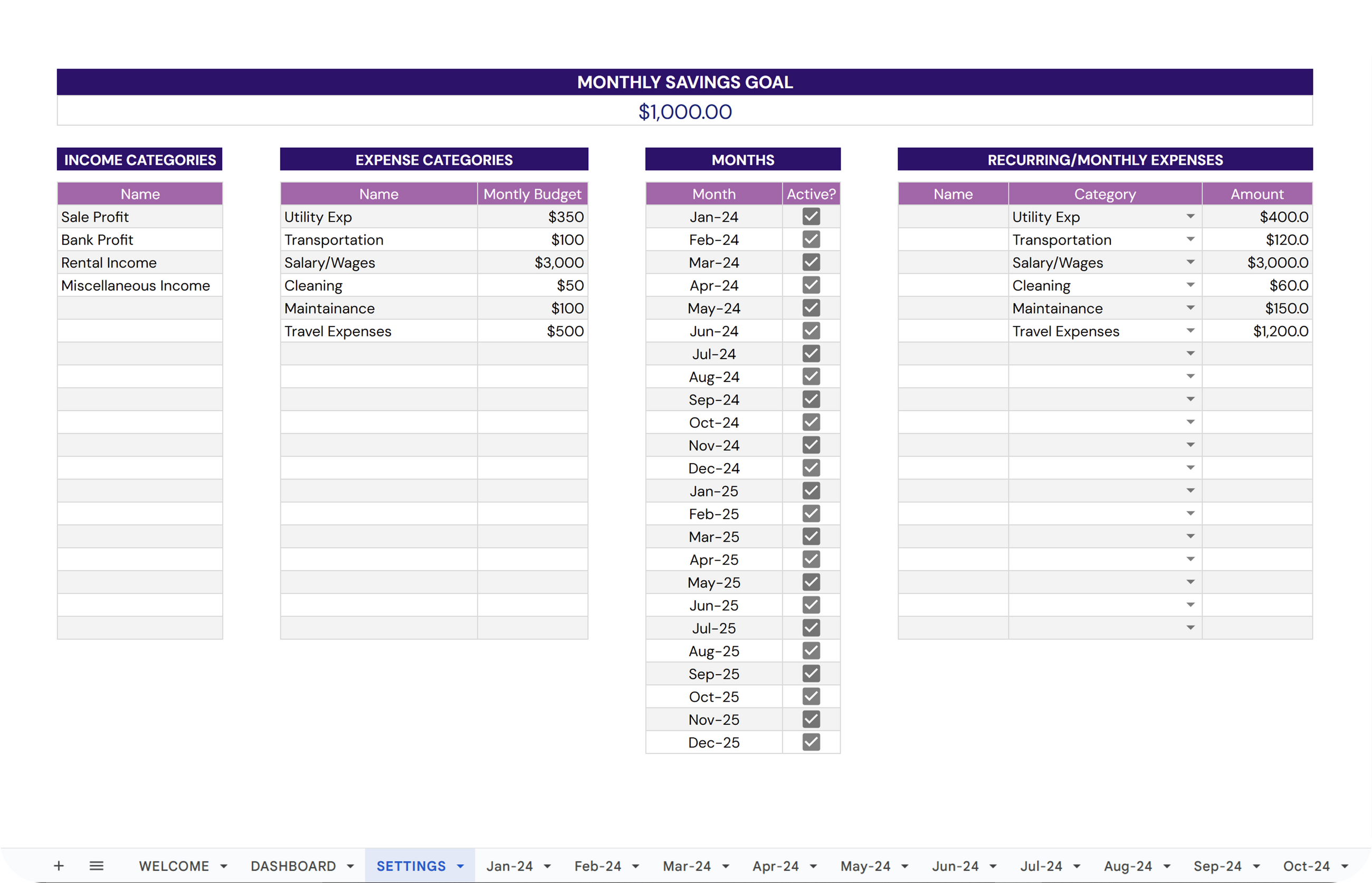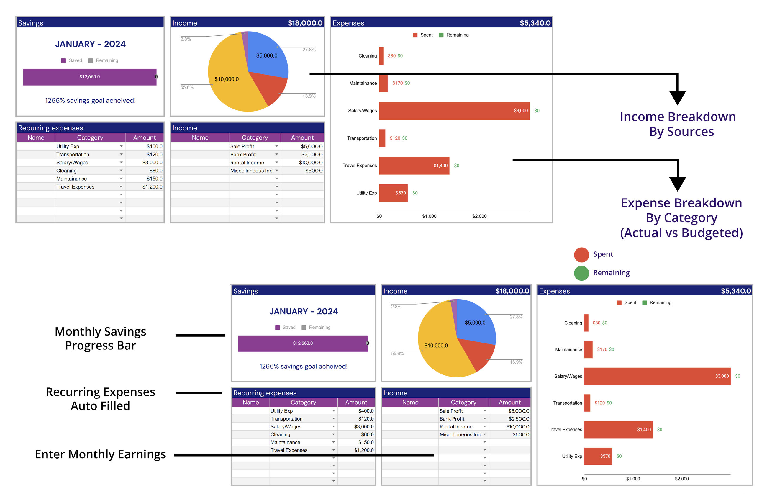✔ Set up recurring expenses that populate automatically each month, saving you time and ensuring accurate budgeting.