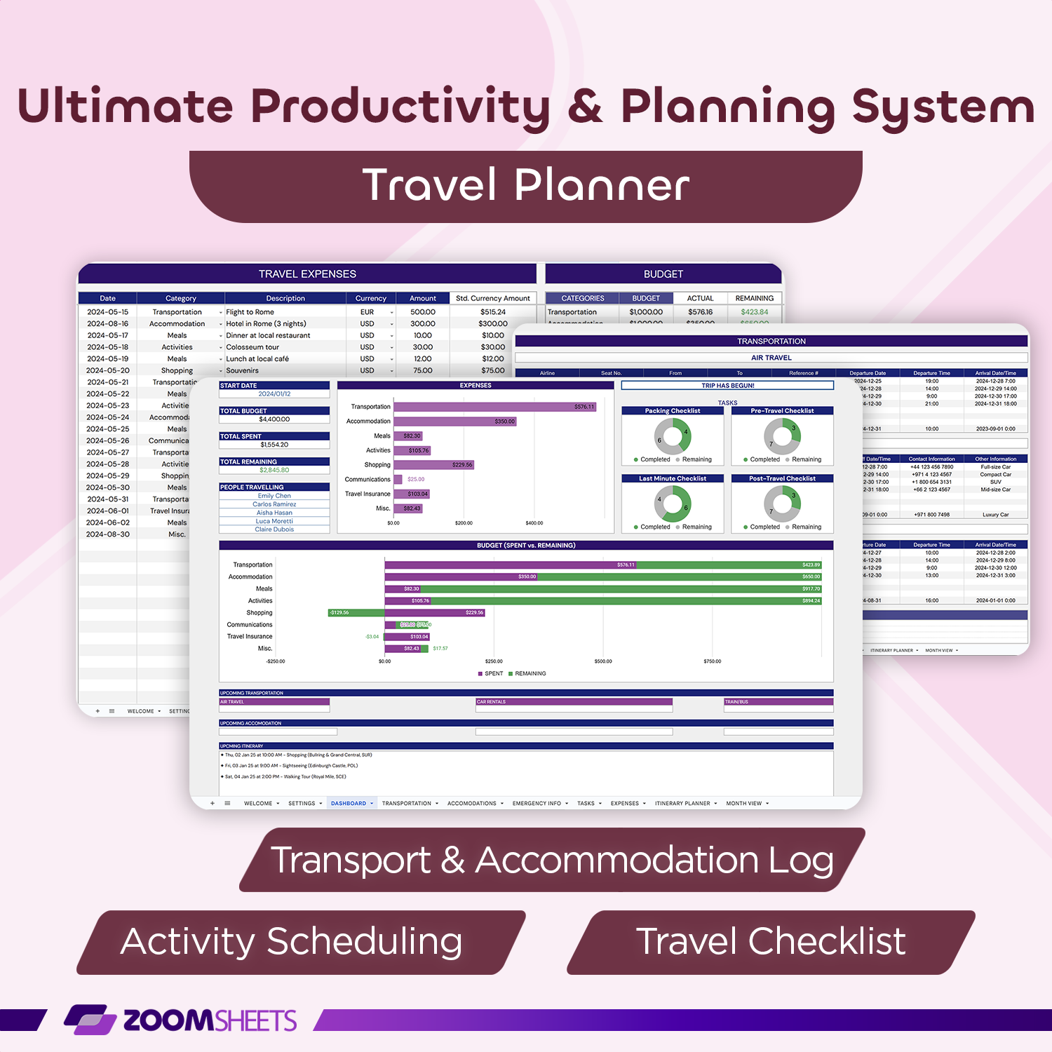 ✔ Pre-Travel Checklist: Plan and prepare pre-travel tasks.