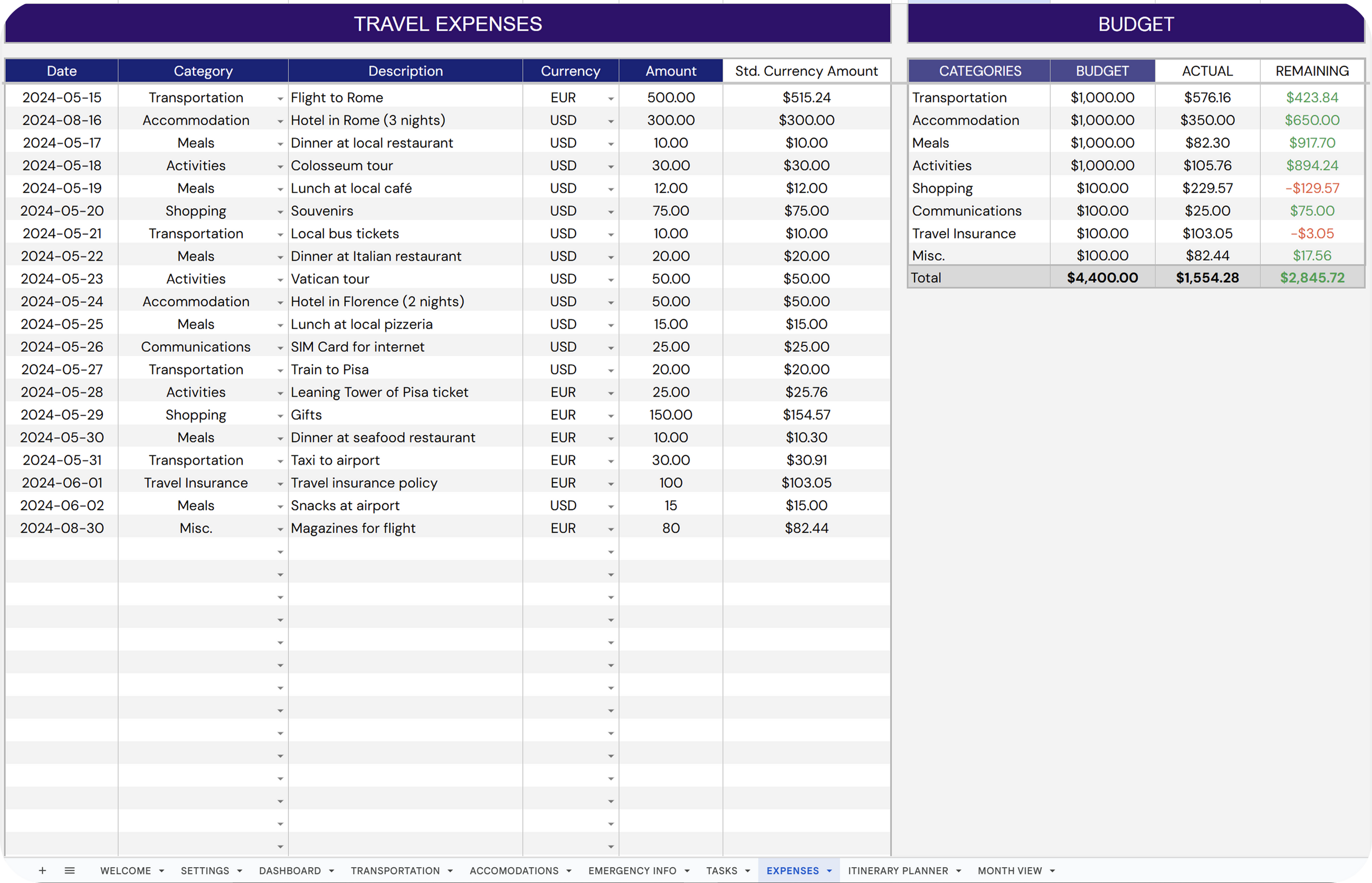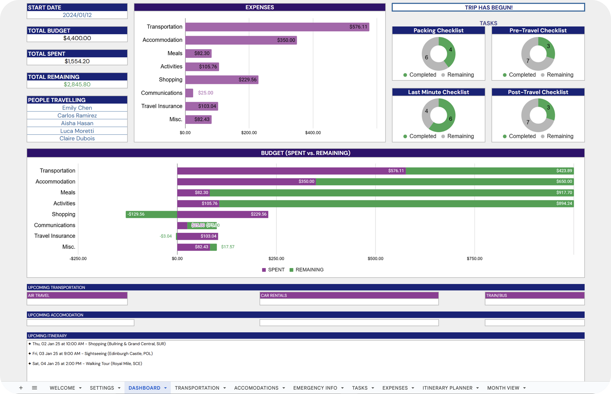 ✔ Budget and Spending: Track and manage trip budget.