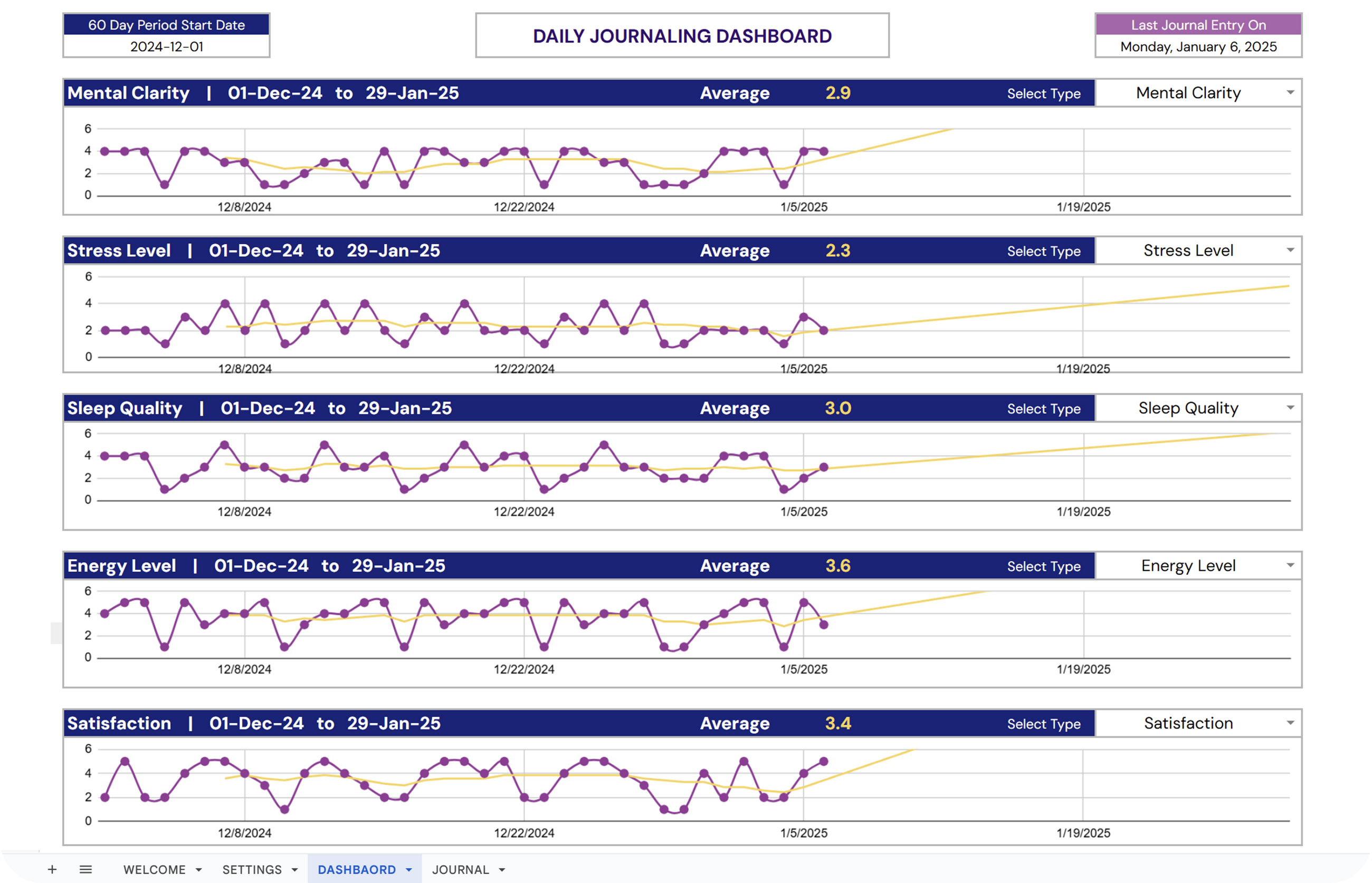 ✔ Last Entry Indicator: Displays the date of the last journal entry.