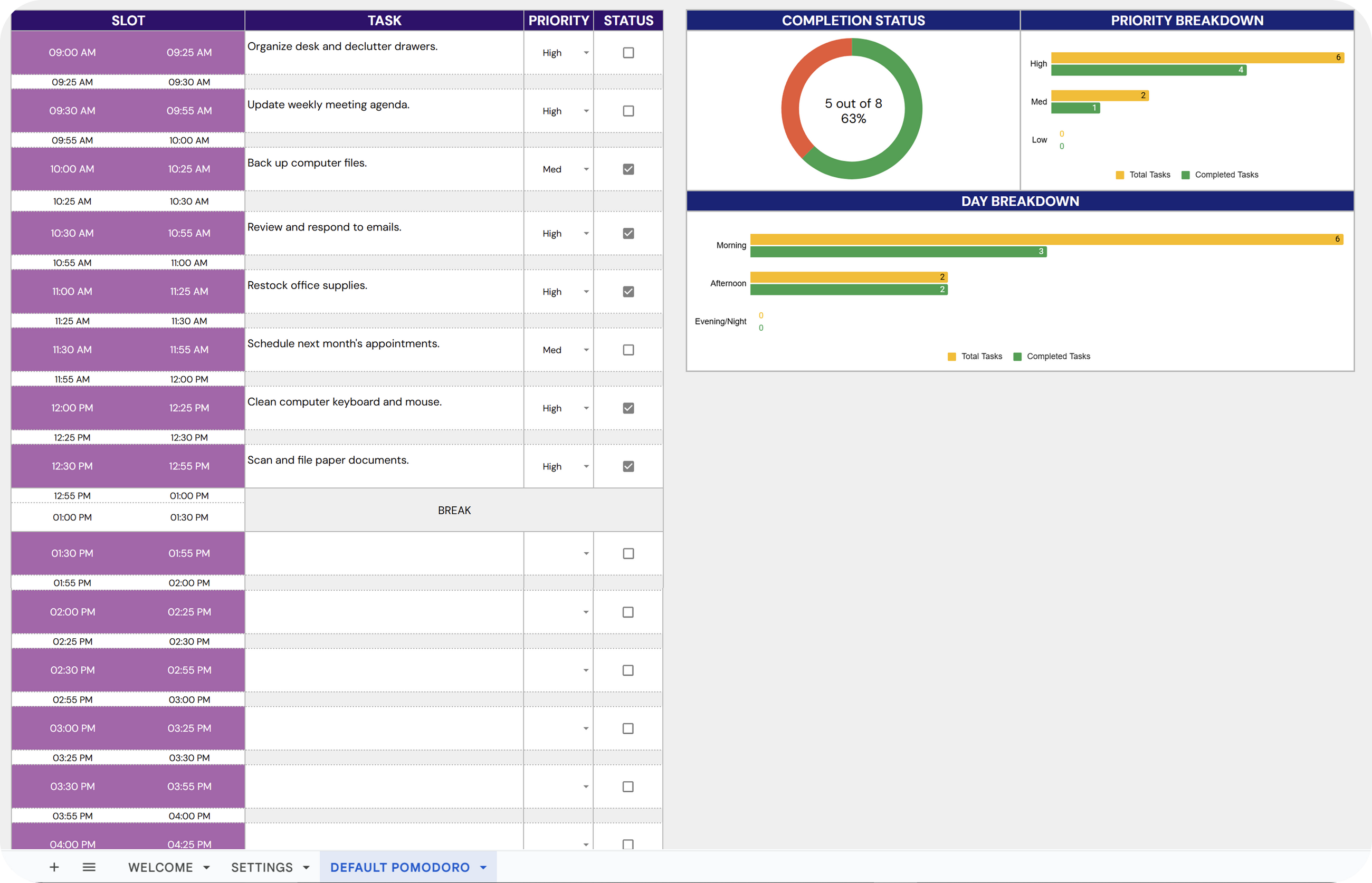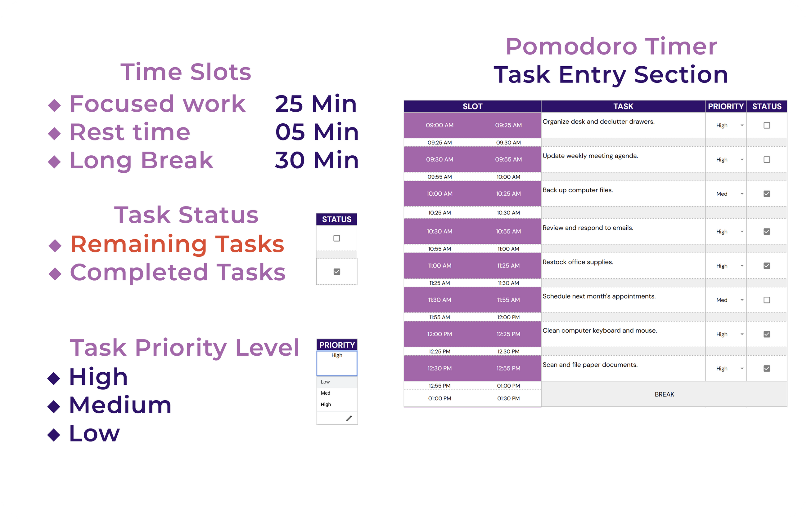 ✔ Dedicated Time Slots: Plan Pomodoro sessions with dedicated time slots for focused work and breaks.