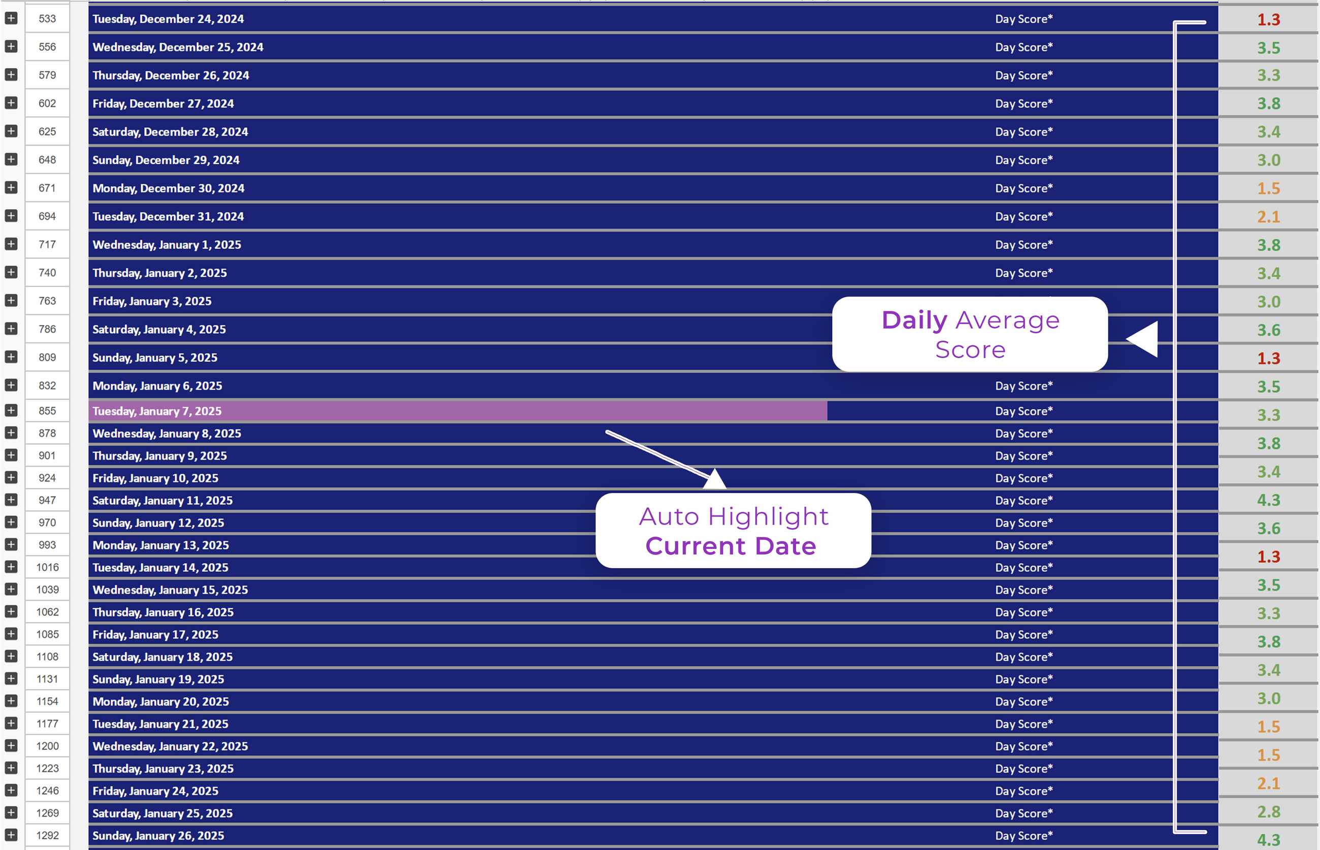 ✔ Daily Score Display: Shows the day's average score instantly.