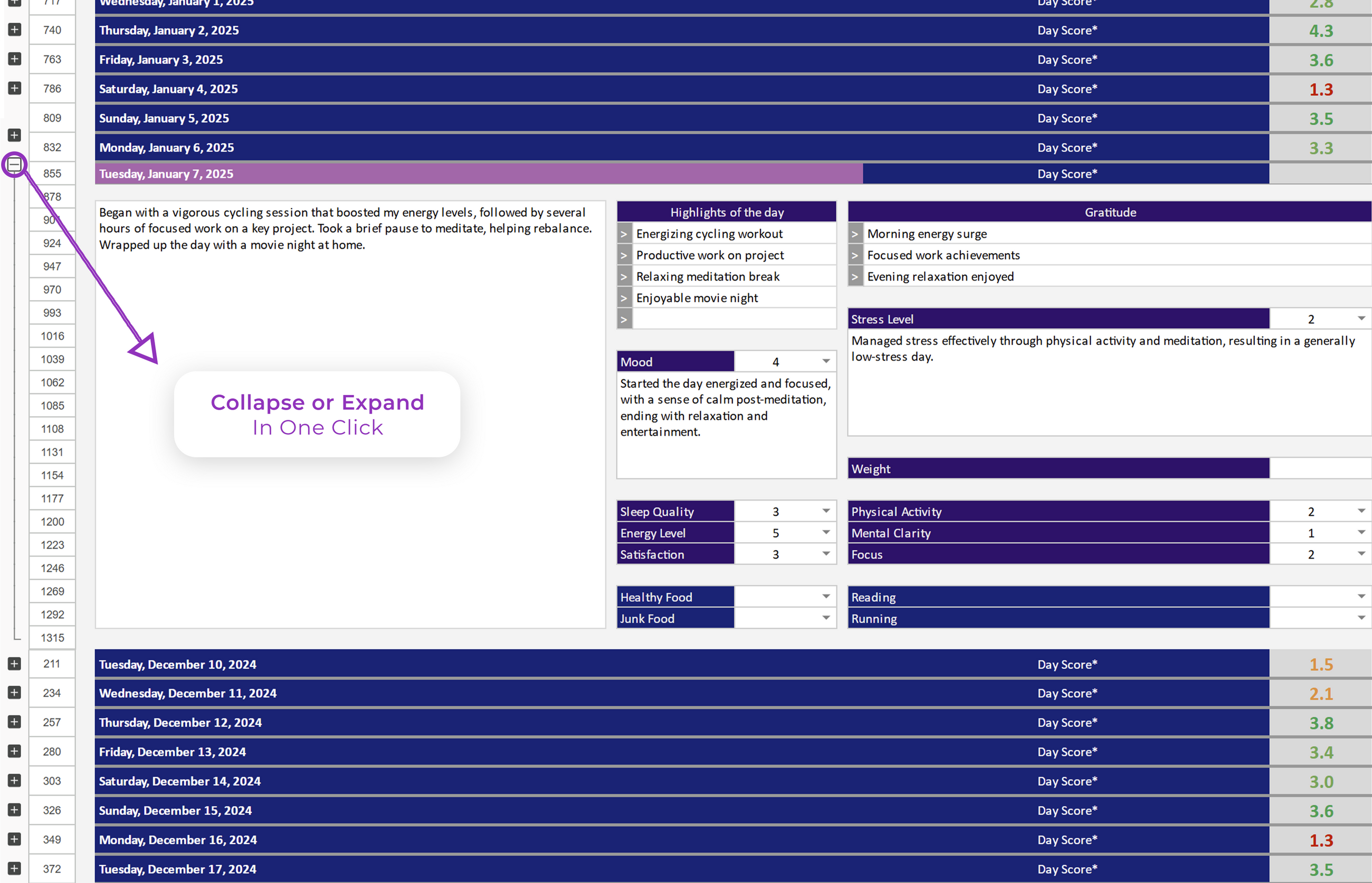 ✔ Quickly scan through your progress in a collapsed view.