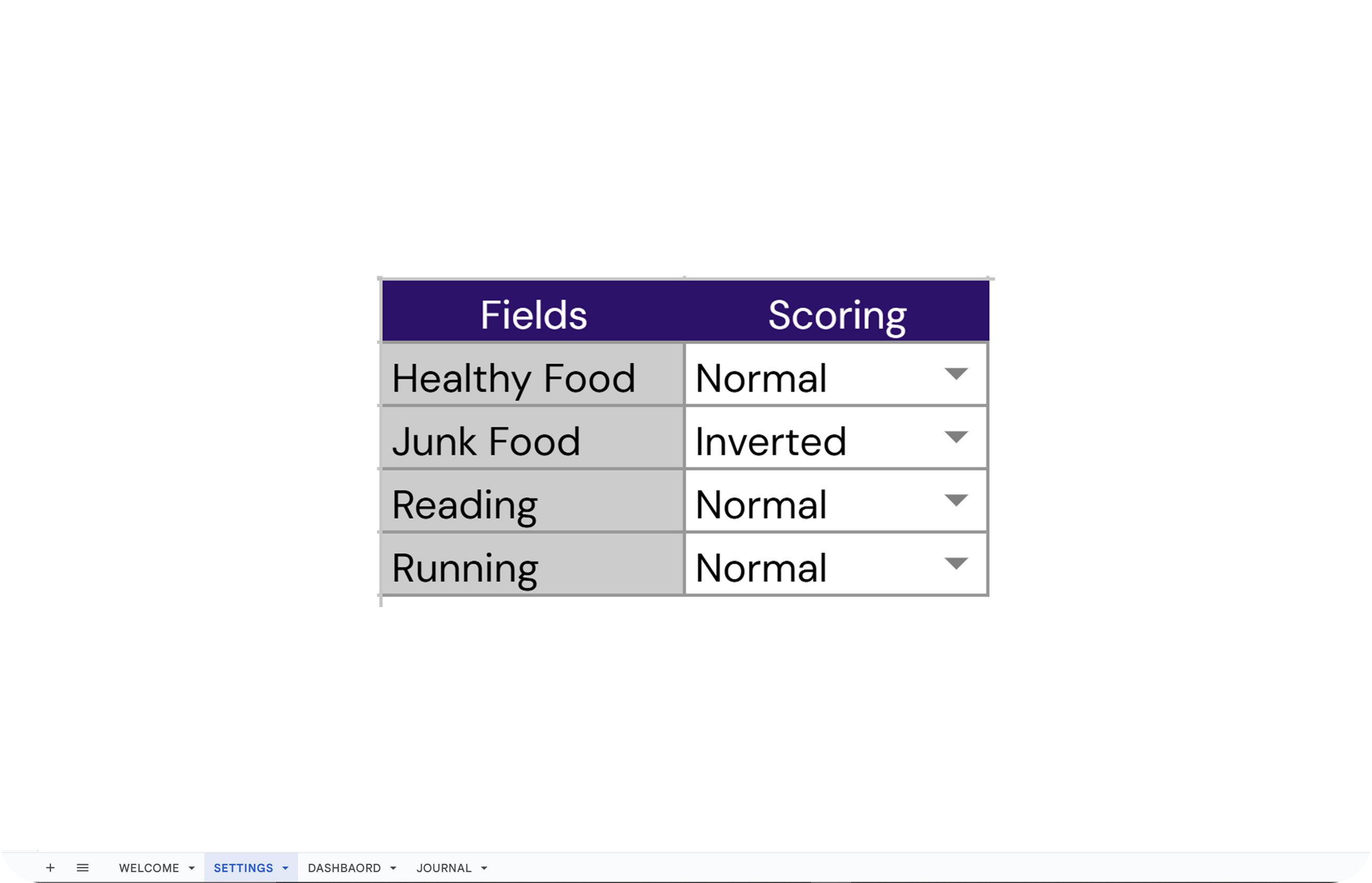 ✔ Scoring Options: Set scoring as standard or inverted for each field.